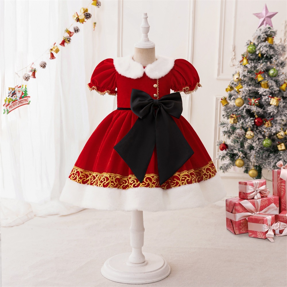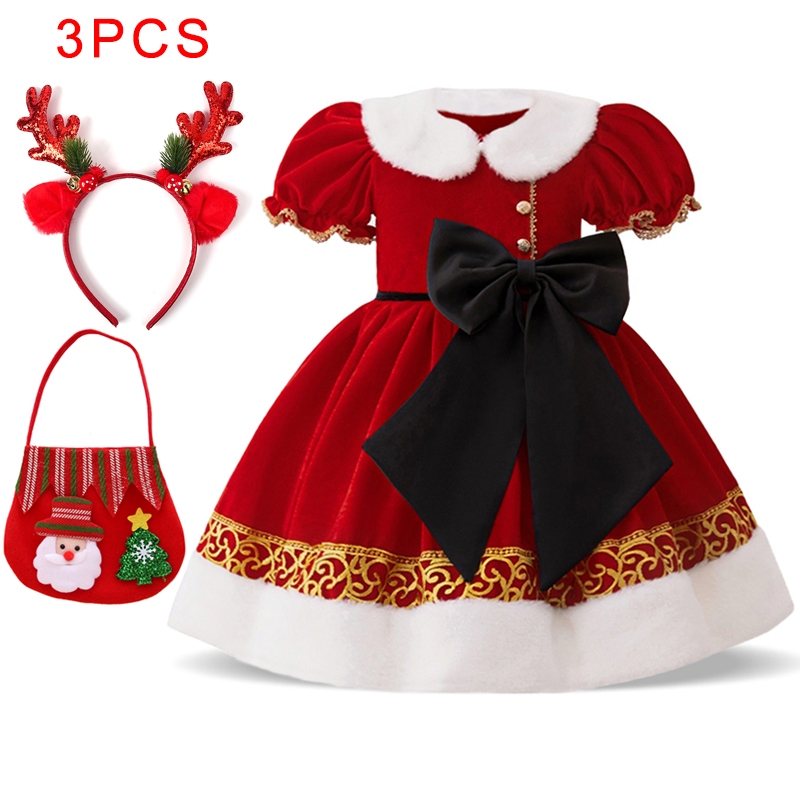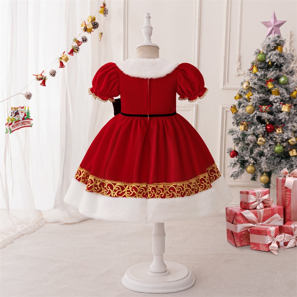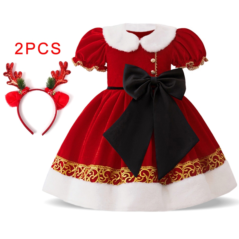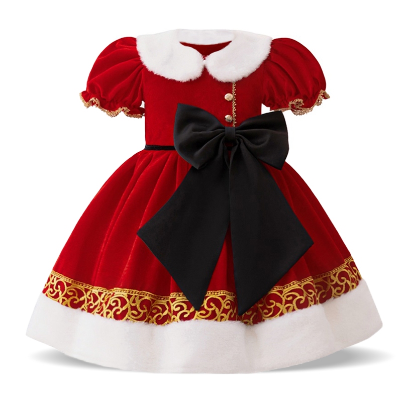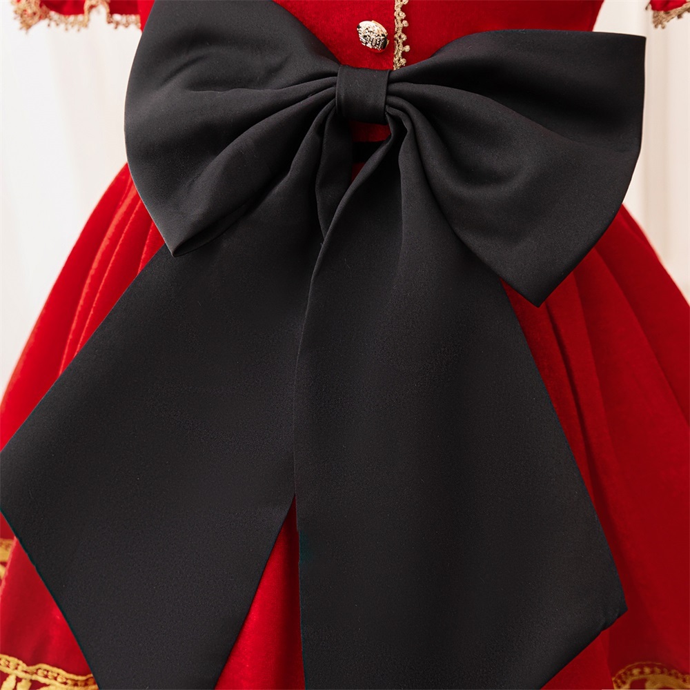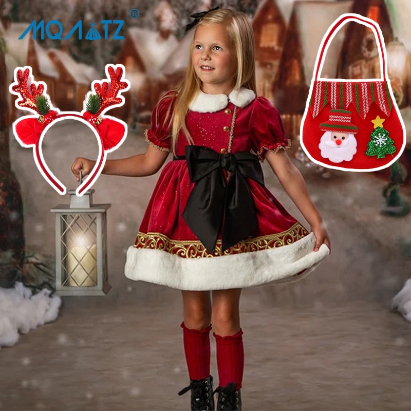 Mqatz ฤดูหนาวชุดคริสต์มาสสีแดงหนาชุดเจ้าหญิงคอสเพลย์เสื้อผ้า Big Bow Girls เครื่องแต่งกาย SD099