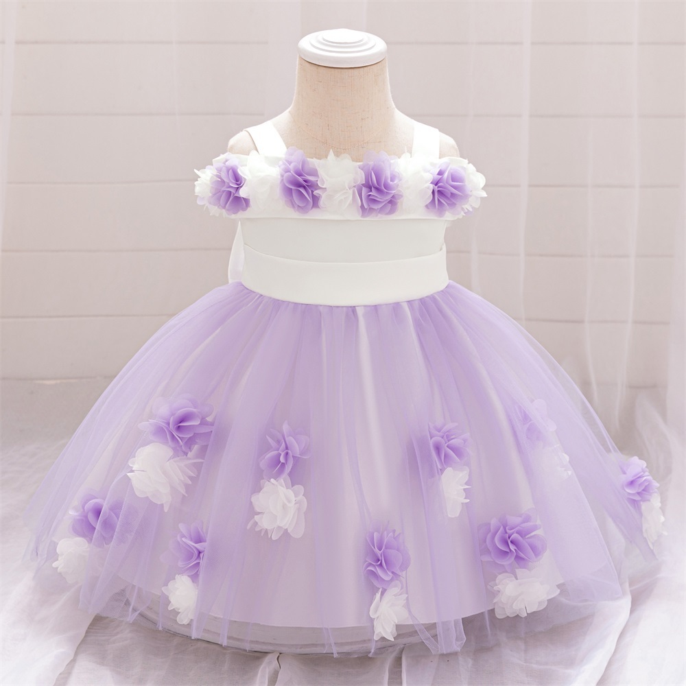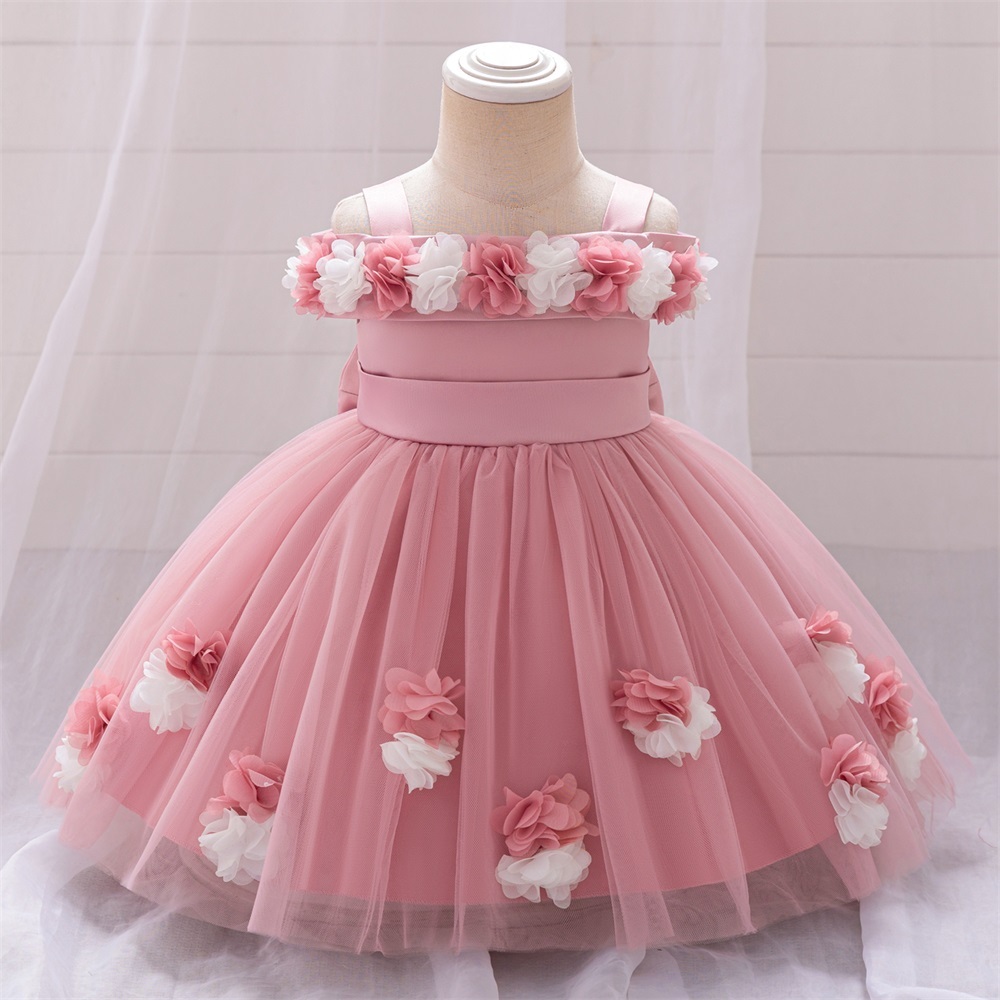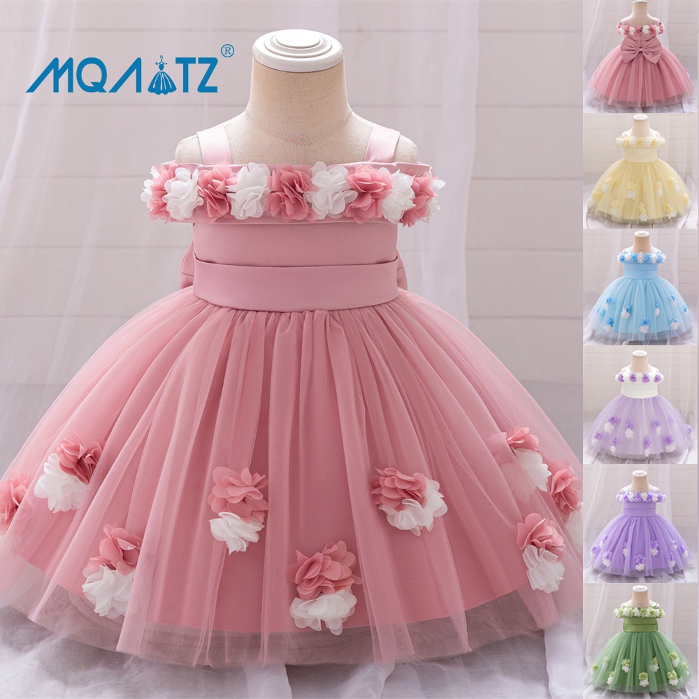 Mqatz ดอกไม้น่ารัก 1st ชุดเด็กผู้หญิงสําหรับวันเกิดเสื้อผ้า Baptism ชุดเจ้าหญิงแขนกุดสาวชุดพรรคชุด 0-4 ปี L2286XZ