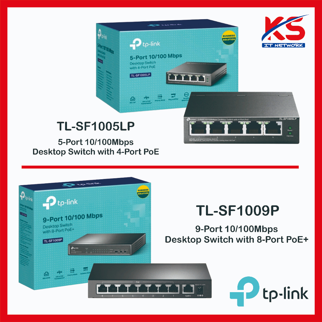 TP-LINK Desktop PoE Switch รุ่น TL-SF1005LP 4-Port POE / รุ่น TL-SF1009P 8-Port PoE 10/100Mbps