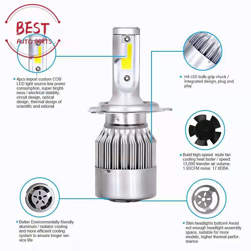 1คู่ C6🔥ถูกที่สุด!! ไฟหน้ารถยนต์ ไฟต่ำ ไฟสูง ไฟตัดหมอด ไฟมอเตอร์ไซค์ C6 LED แสงสีขาว H1 H3 H4 H7 H11 9005 9006 36W 6000K