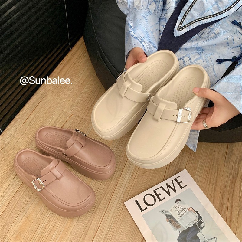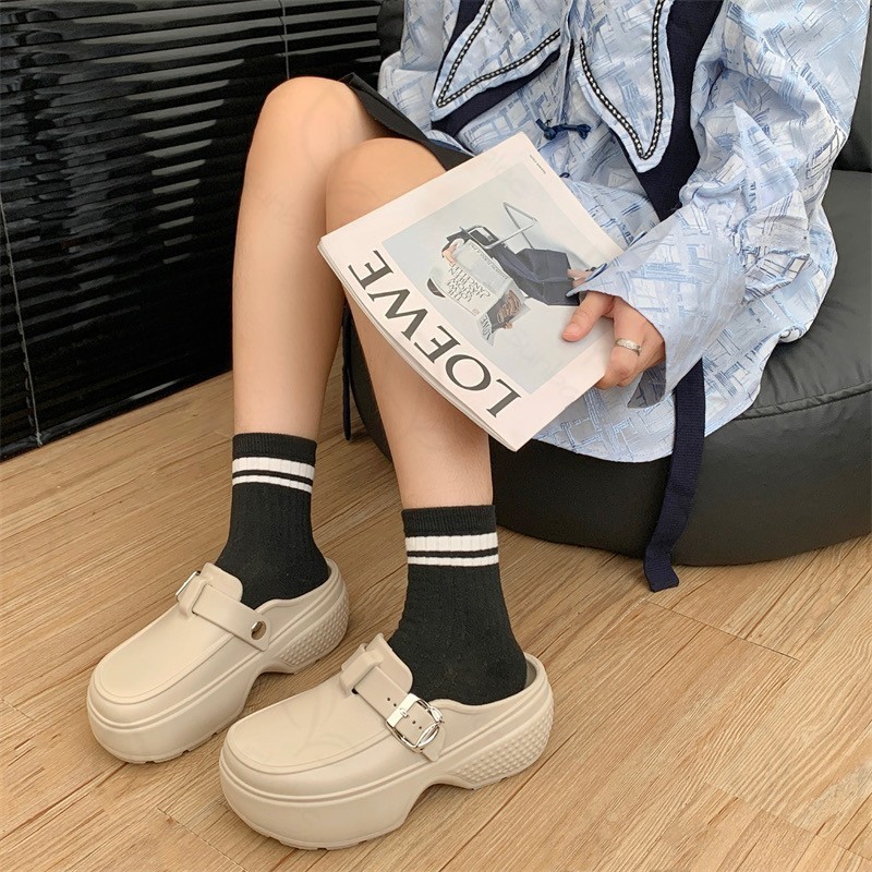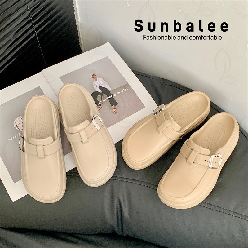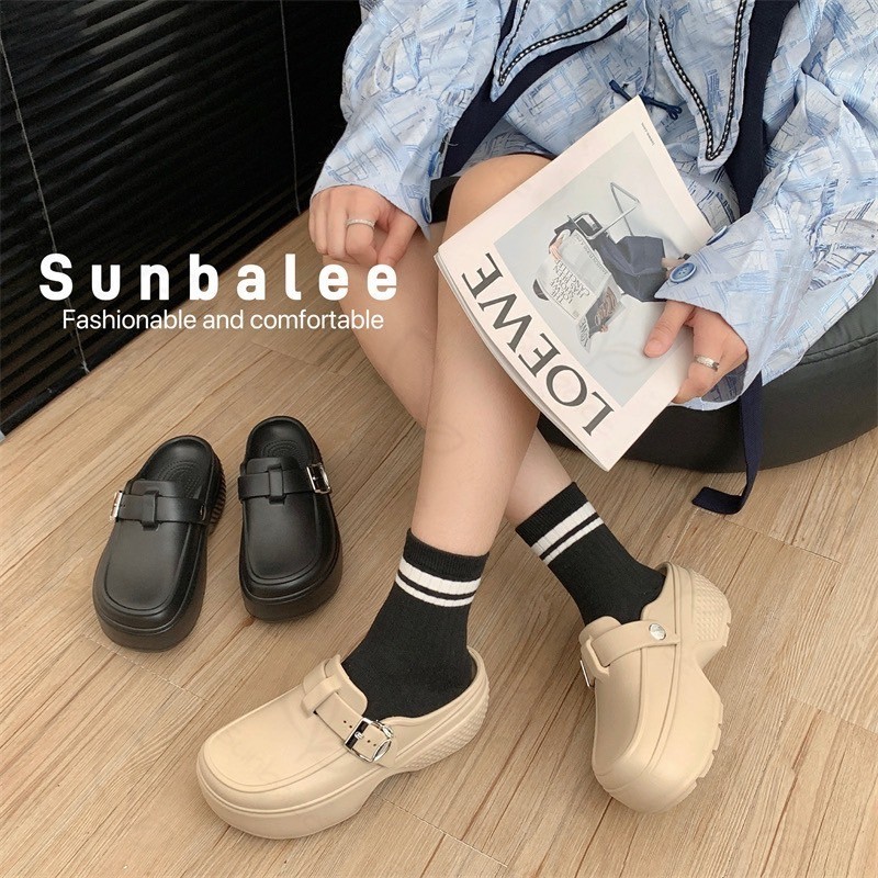 รองเท้าคัทชูเสริมส้น รองเท้าผู้หญิง สูง 7 เซน เปิดส้นเท้า แบบสวม วัสดุยาง EVA SUNG57