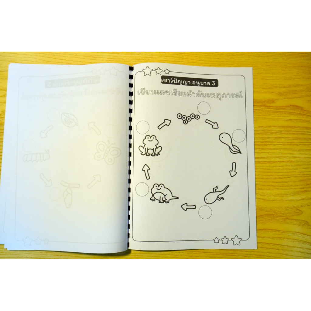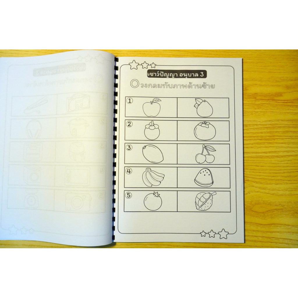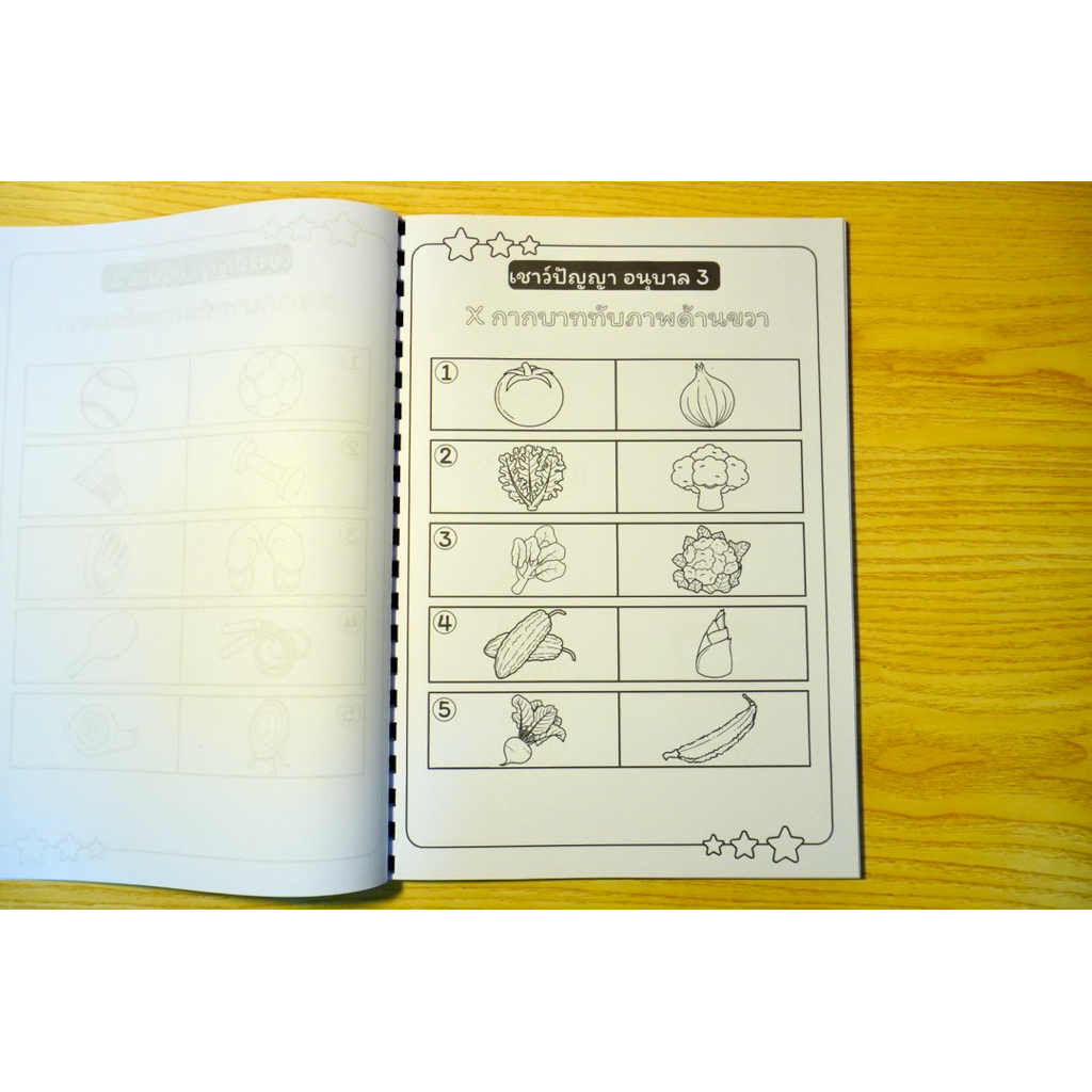 🟣 แบบฝึกหัดเชาว์ปัญญา อนุบาล 3 ระบายสี เข้าเล่มสันกระดูกงู