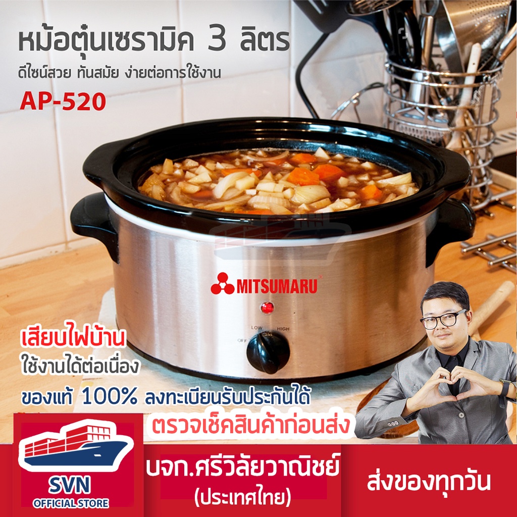 MITSUMARU หม้อตุ๋นไฟฟ้า เซมามิค ความจุ 3 ลิตร รุ่น AP-520 สินค้ารับประกัน 3 ปี