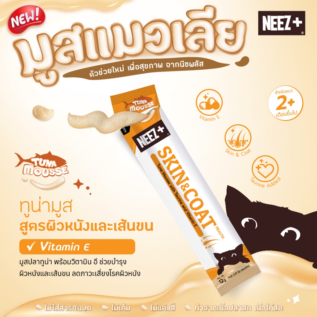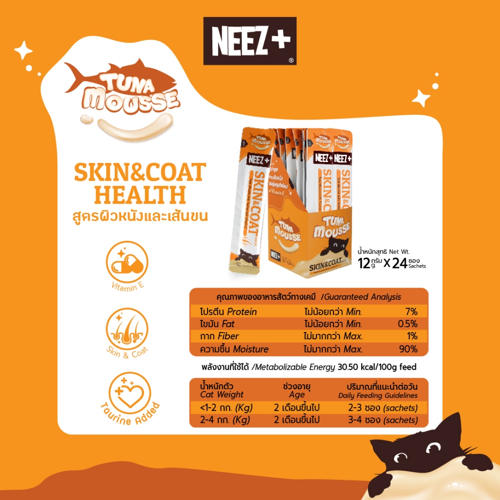 นีซพลัส มูสแมวเลีย สูตรผิวหนังและเส้นขน รสทูน่า ยกกล่อง (24 ซอง)