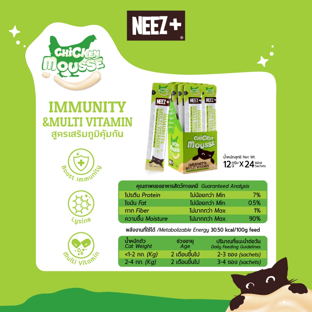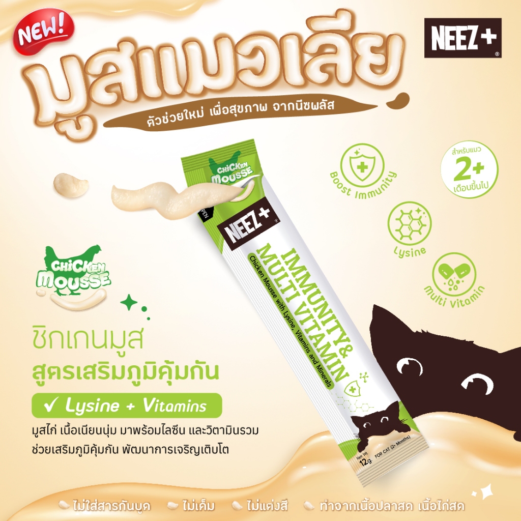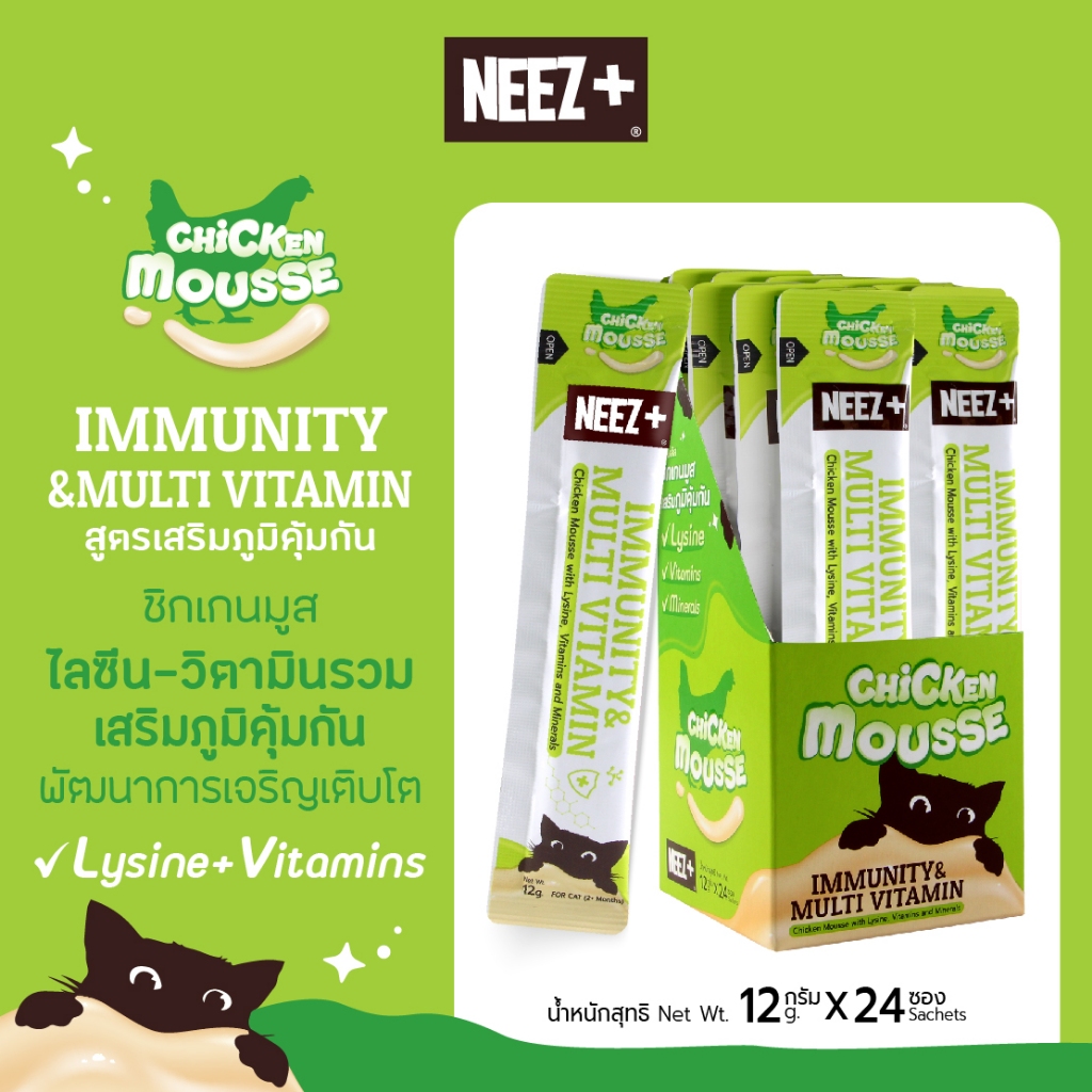 (MIM) NEEZ+ มูสแมวเลีย สูตรเสริมภูมิคุ้มกัน รสไก่ ยกกล่อง (24 ซอง)