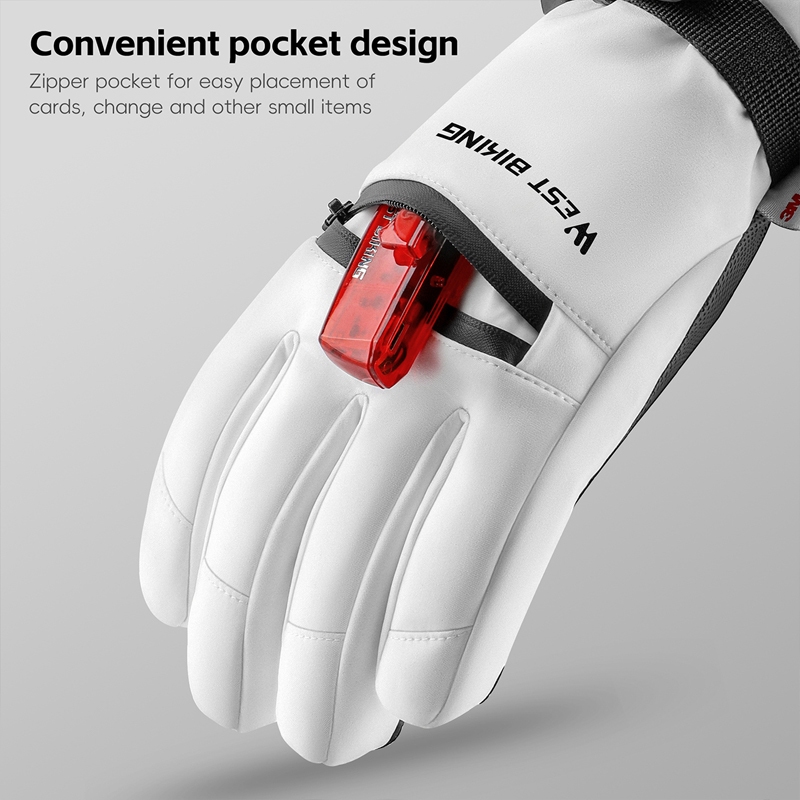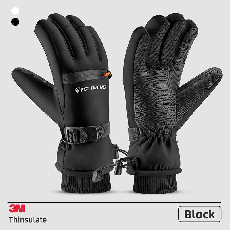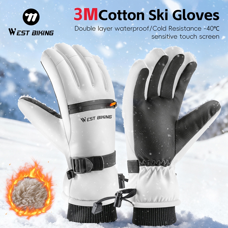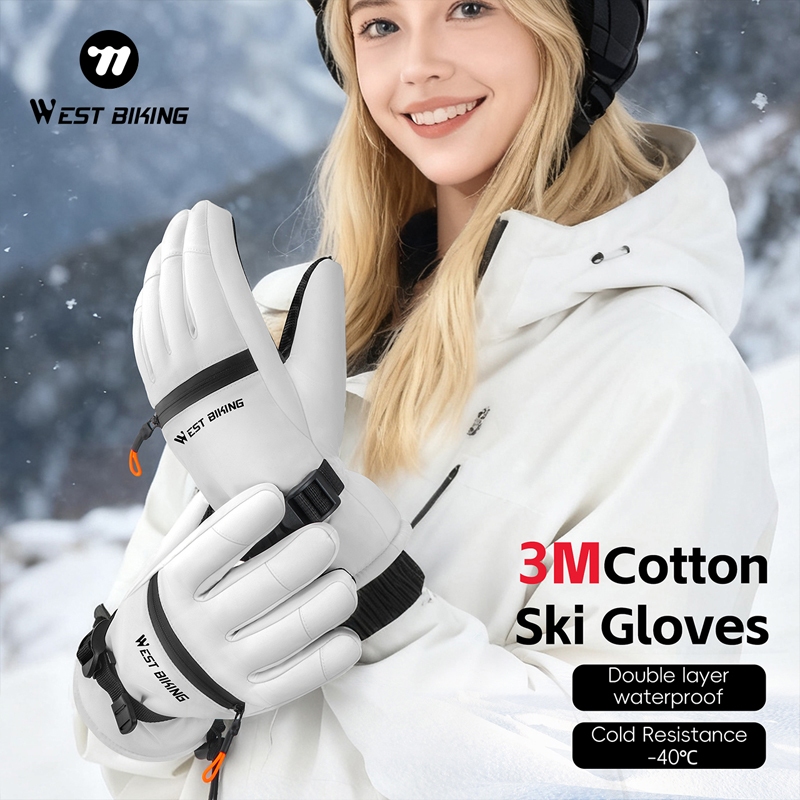 WEST BIKING ถุงมือผ้าฝ้ายสกีสองชั้น ป้องกันน้ำและทนทานต่อสภาพอากาศหนาว ออกแบบมาเพื่อการขี่จักรยานและทำกิจกรรมกลางแจ้งในฤดูหนาว