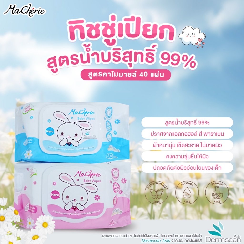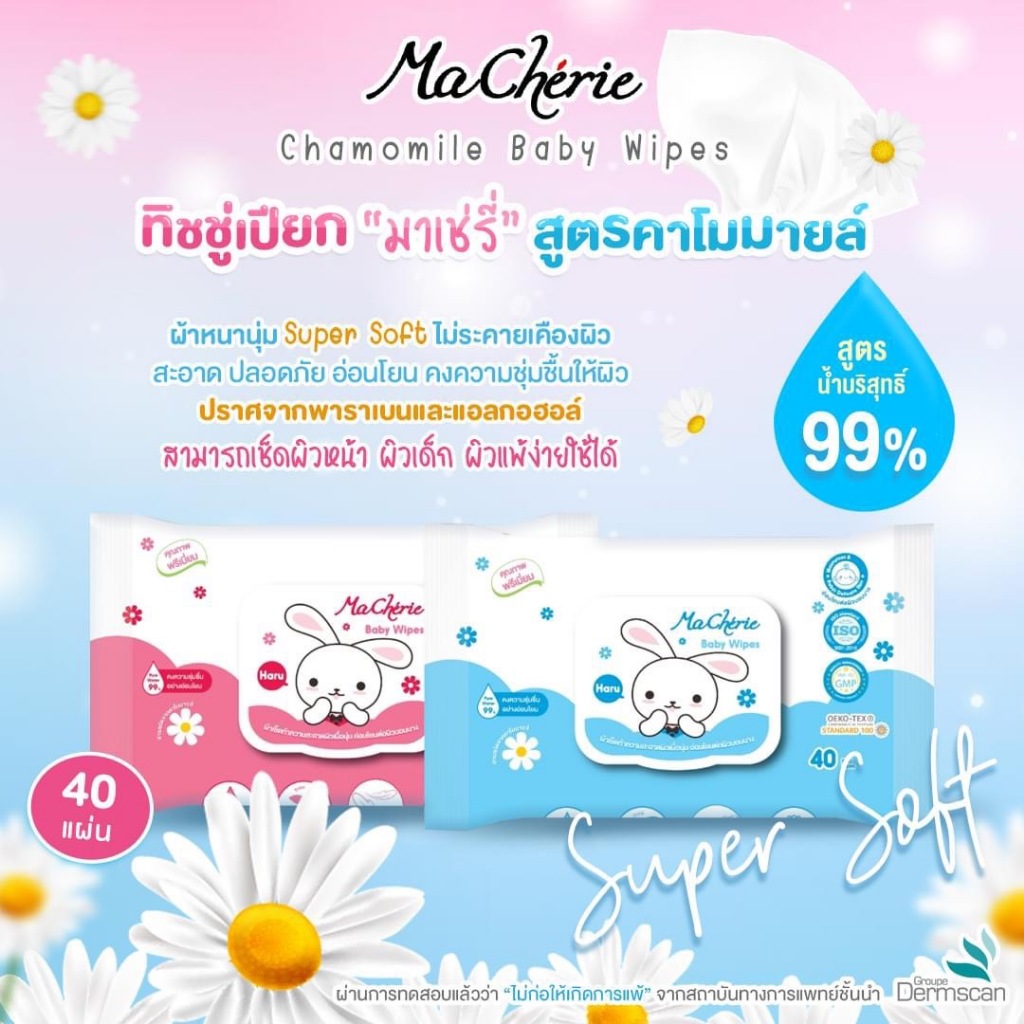 Ma cherie - ยกลัง 36 ห่อ ทิชชู่เปียก 40 แผ่น สารสกัดจากคาโมมายล์ สูตรอ่อนโยนสำหรับเด็ก