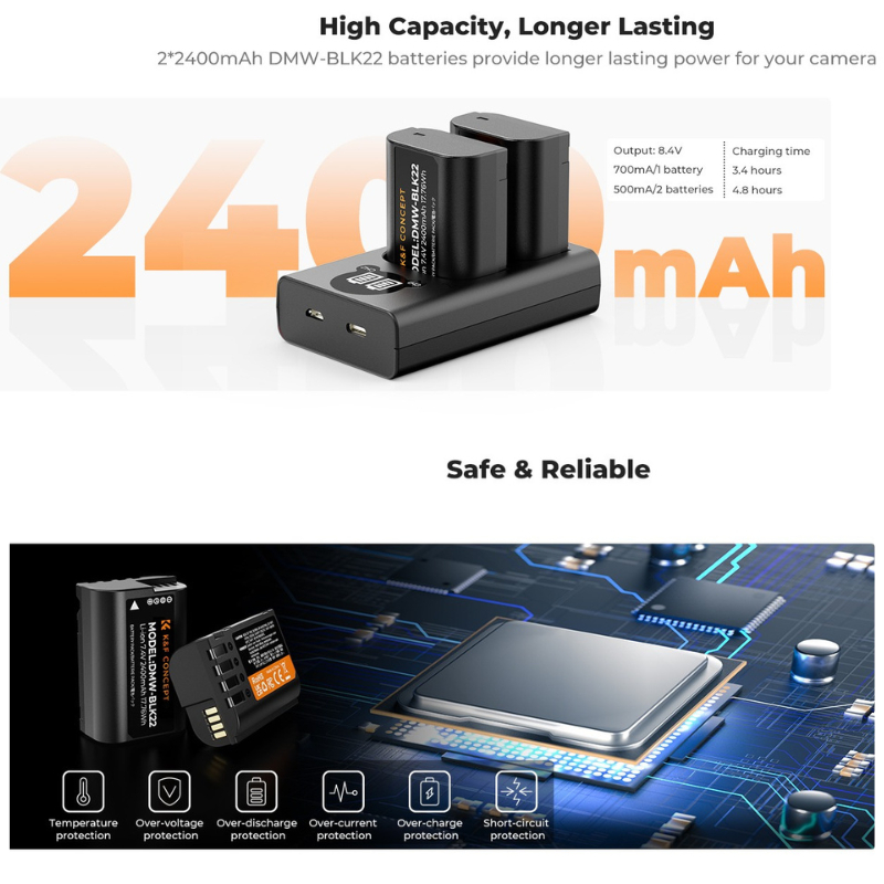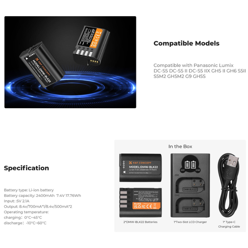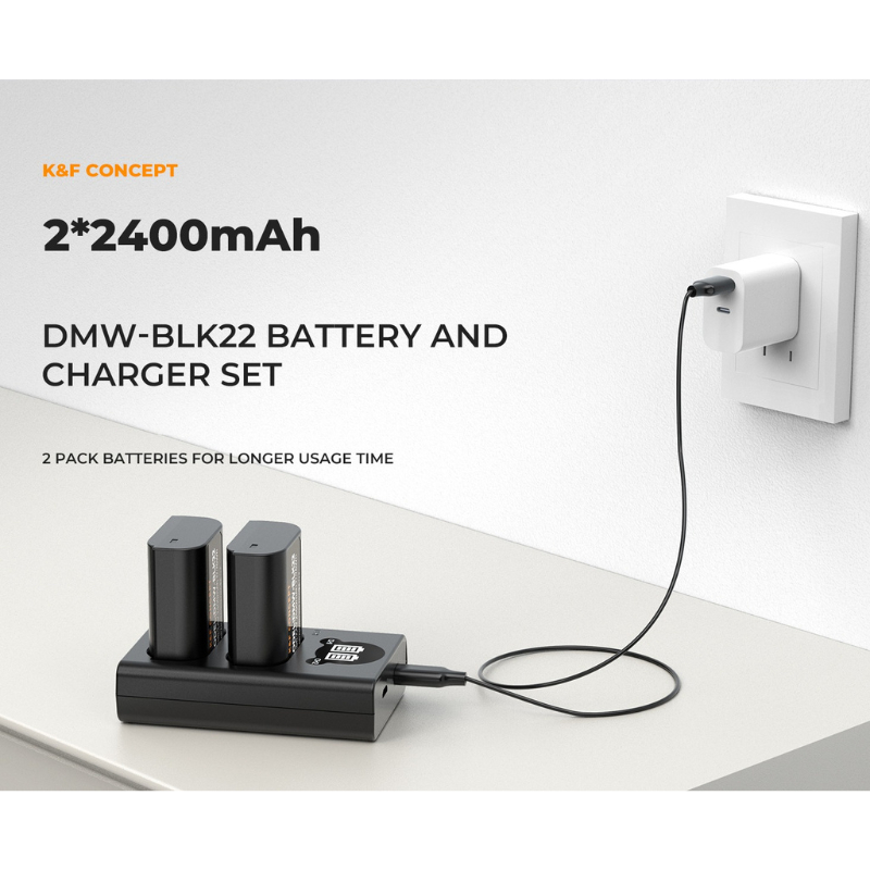 K&F DMW-BLK22 Charger LCD Screen and 2 Pack Battery
