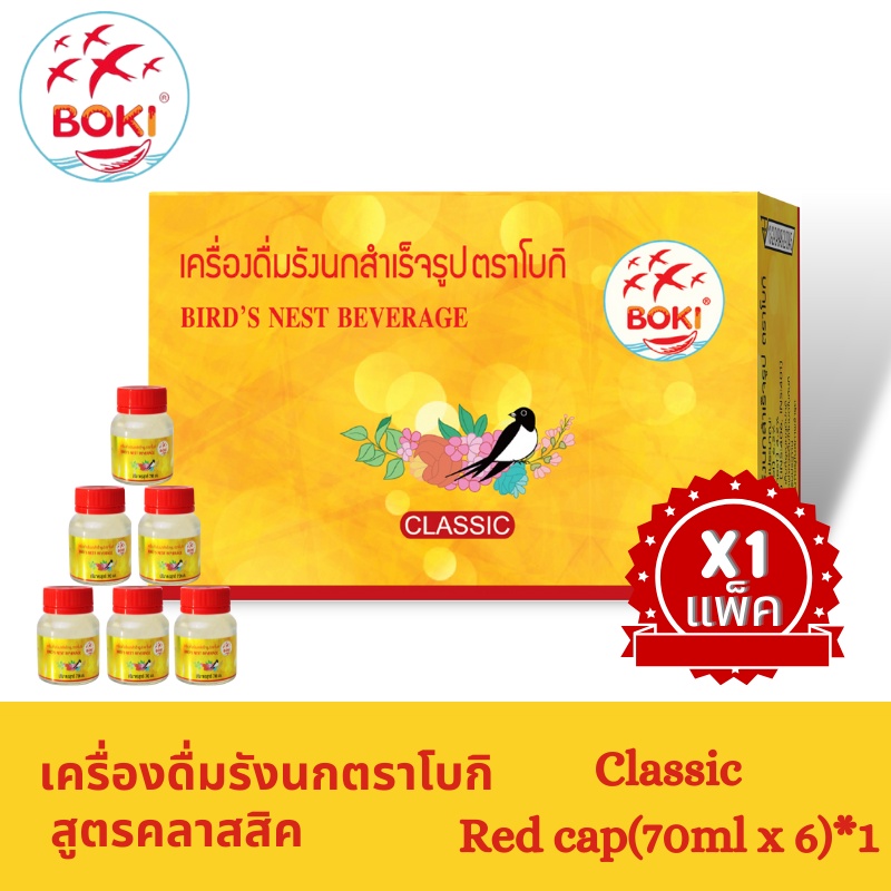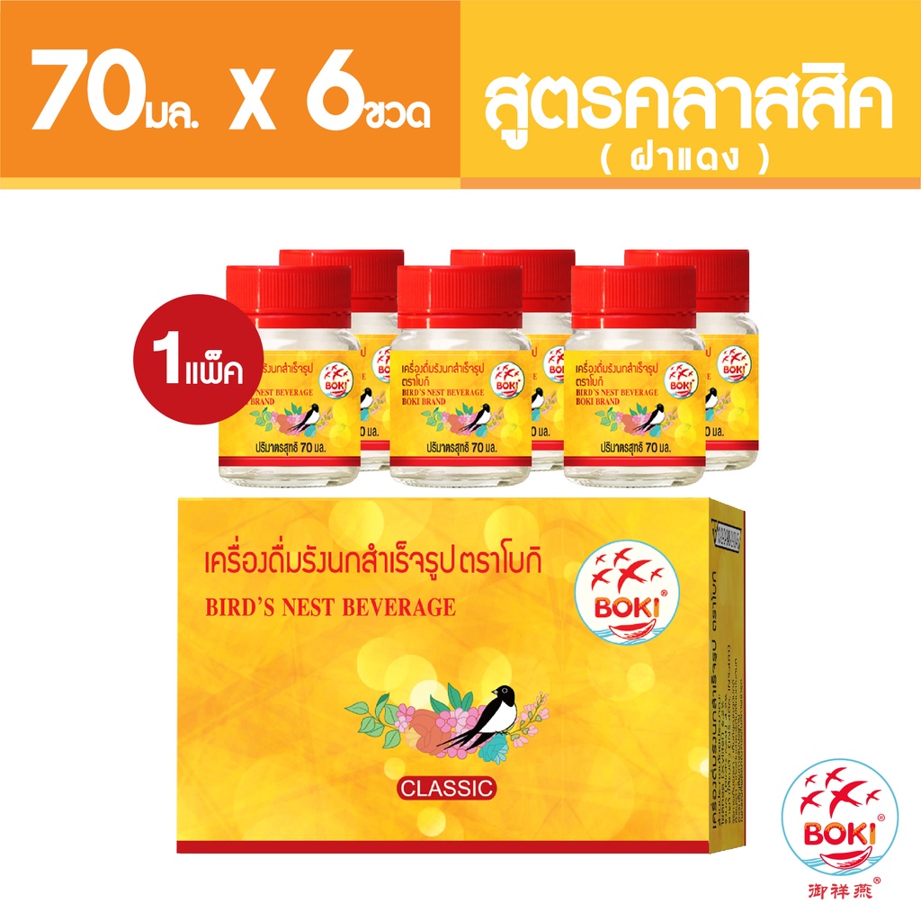 BOKI เครื่องดื่มรังนกสำเร็จรูป คลาสสิค (ฝาแดง) 70ml x 6 รังนกเพื่อสุขภาพ Bird’s nest beverage Classic