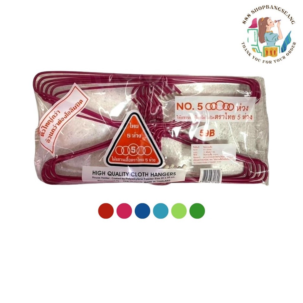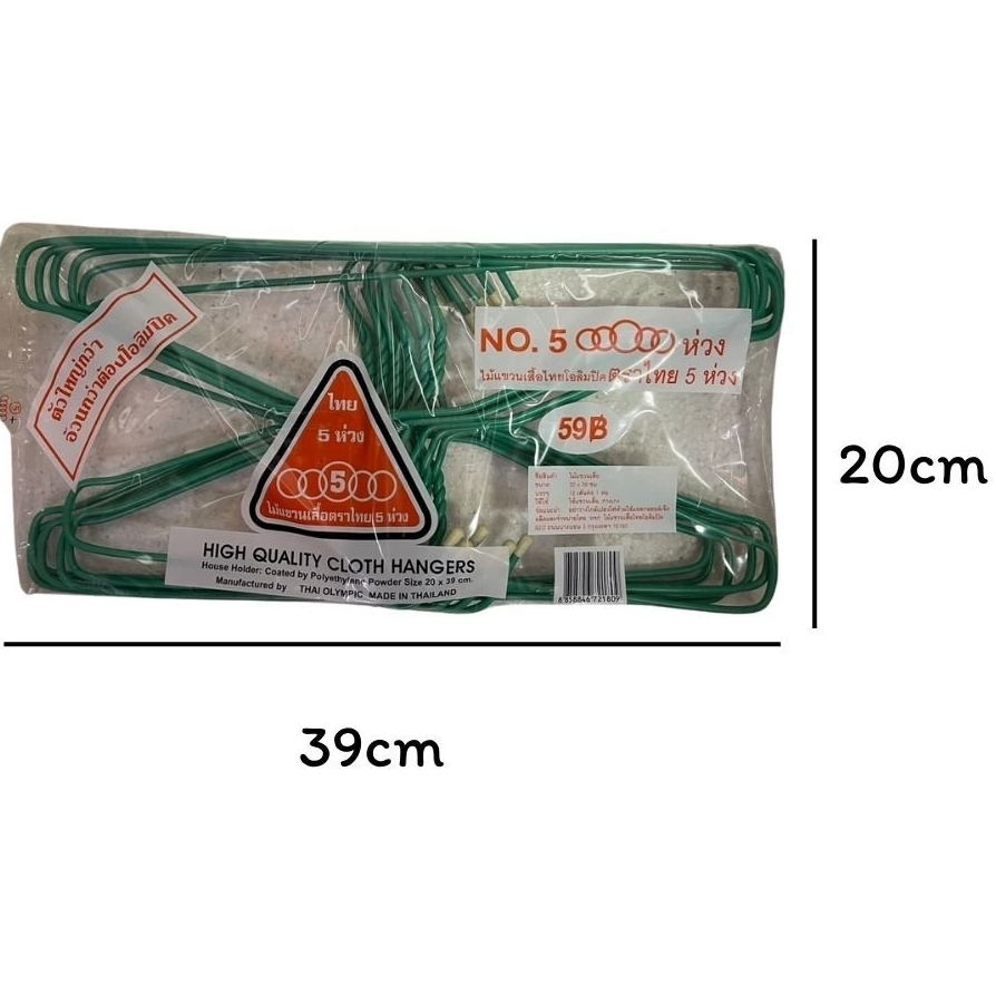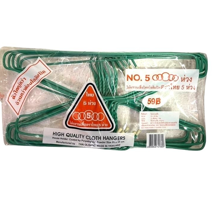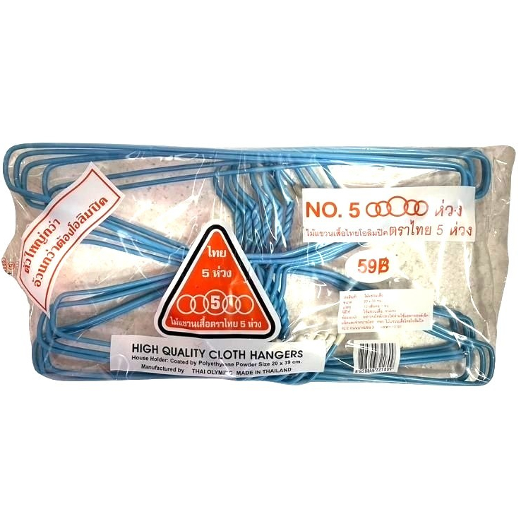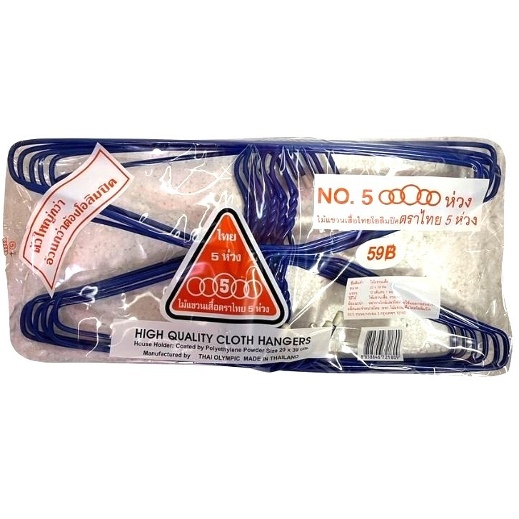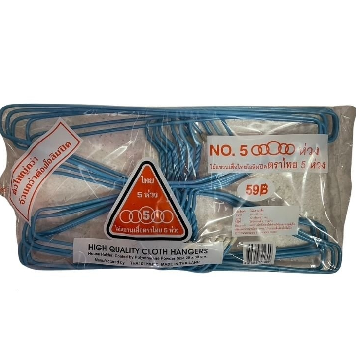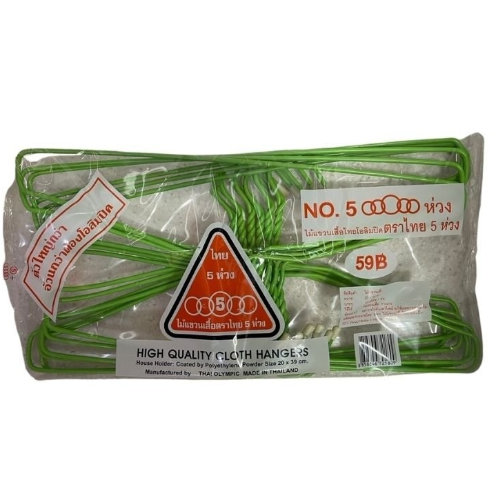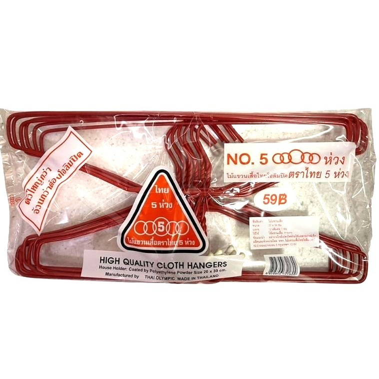 (1แพ็ค) ไม้แขวนเสื้อ ผู้ใหญ่ ไทยโอลิมปิค ตราไทย 5 ห่วง No.5 ห่วง