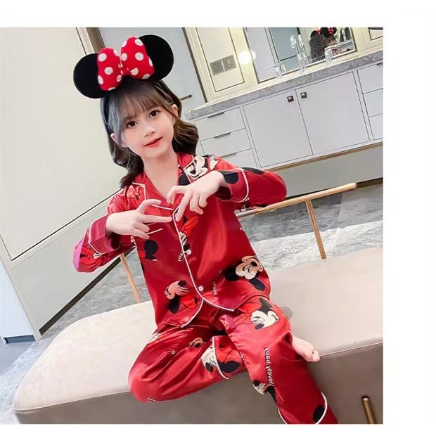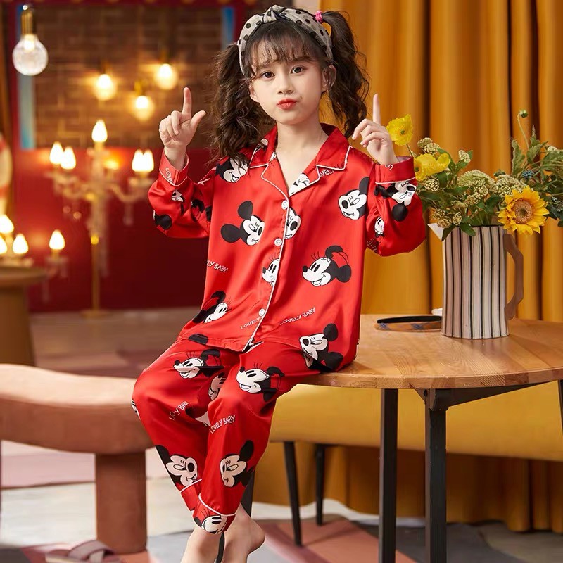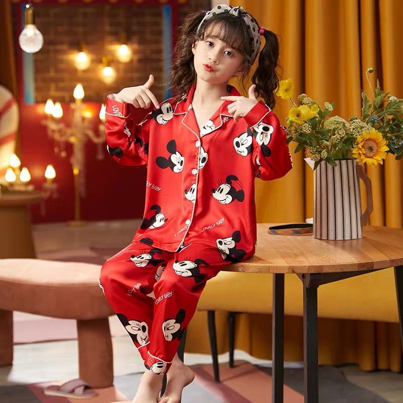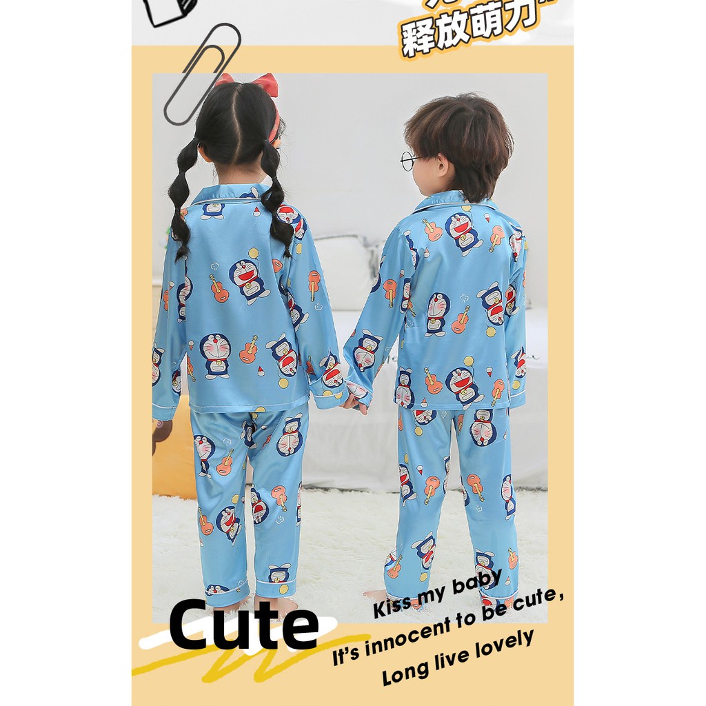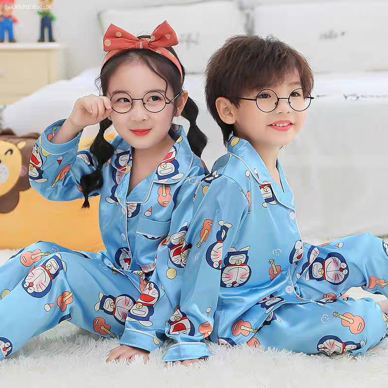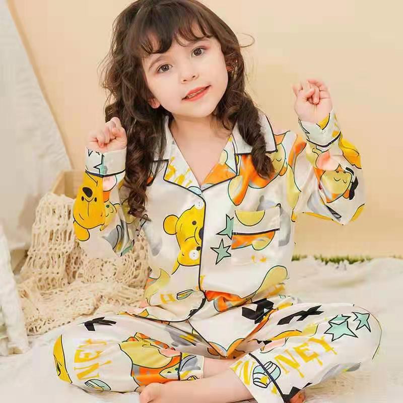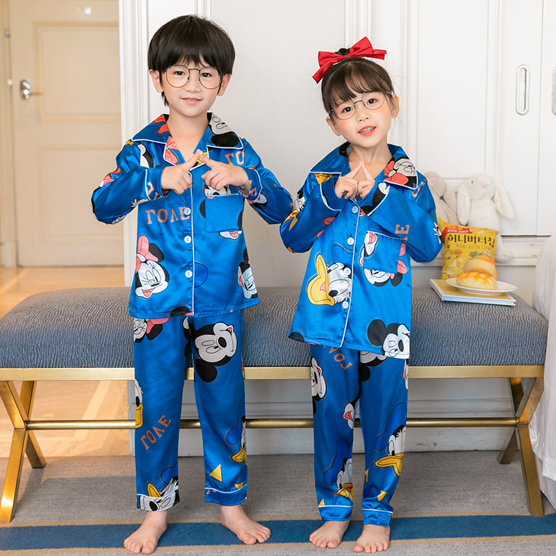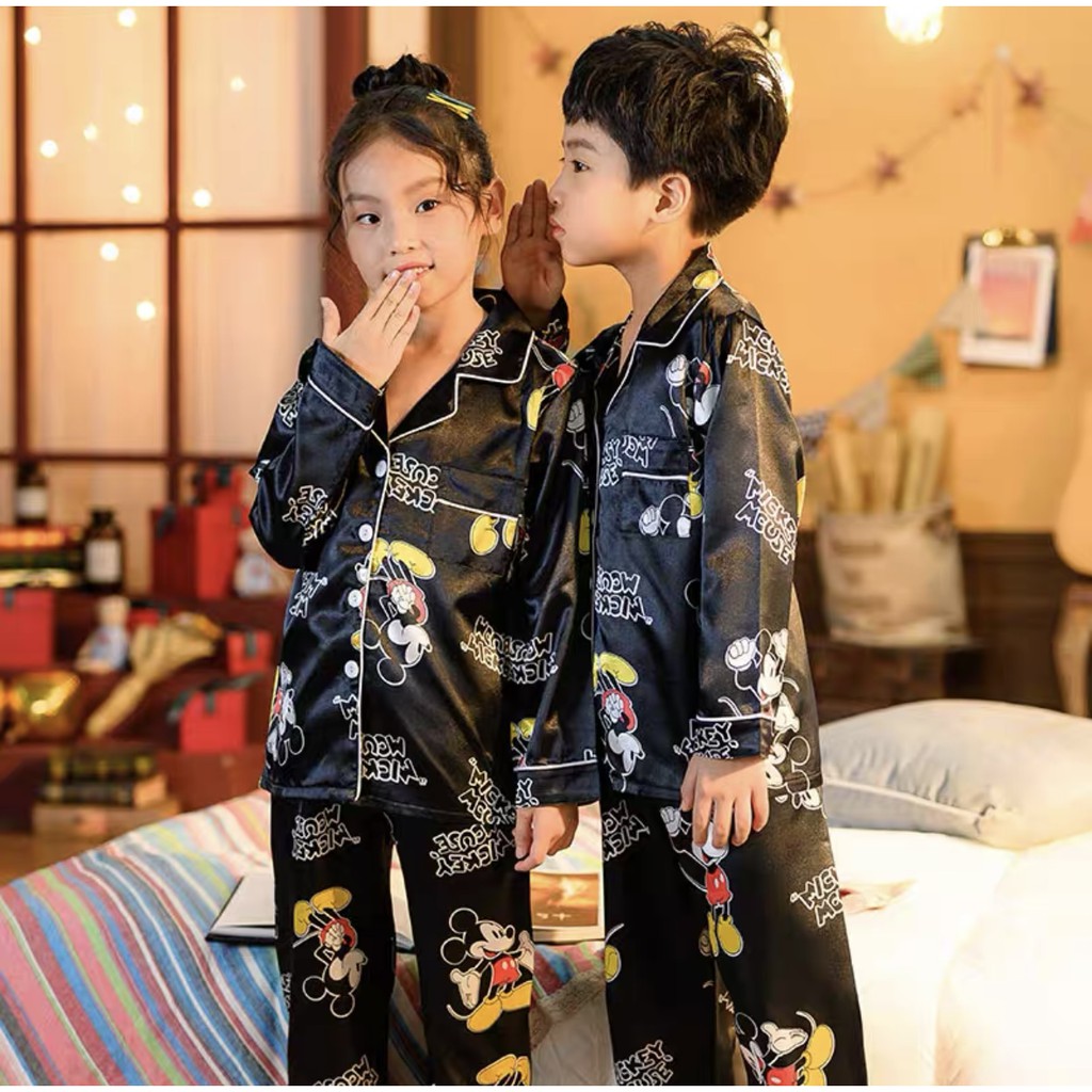 💕ชุดนอนเด็ก ชุดนอนลายการ์ตูนผ้าซาติน ชุดนอนเด็กใส่ได้ทั้งเด็กผู้ชายและเด็กผู้หญิง ชุดนอนเด็กผ้าซาติน ผ้ามันลื่น สวยมากๆ