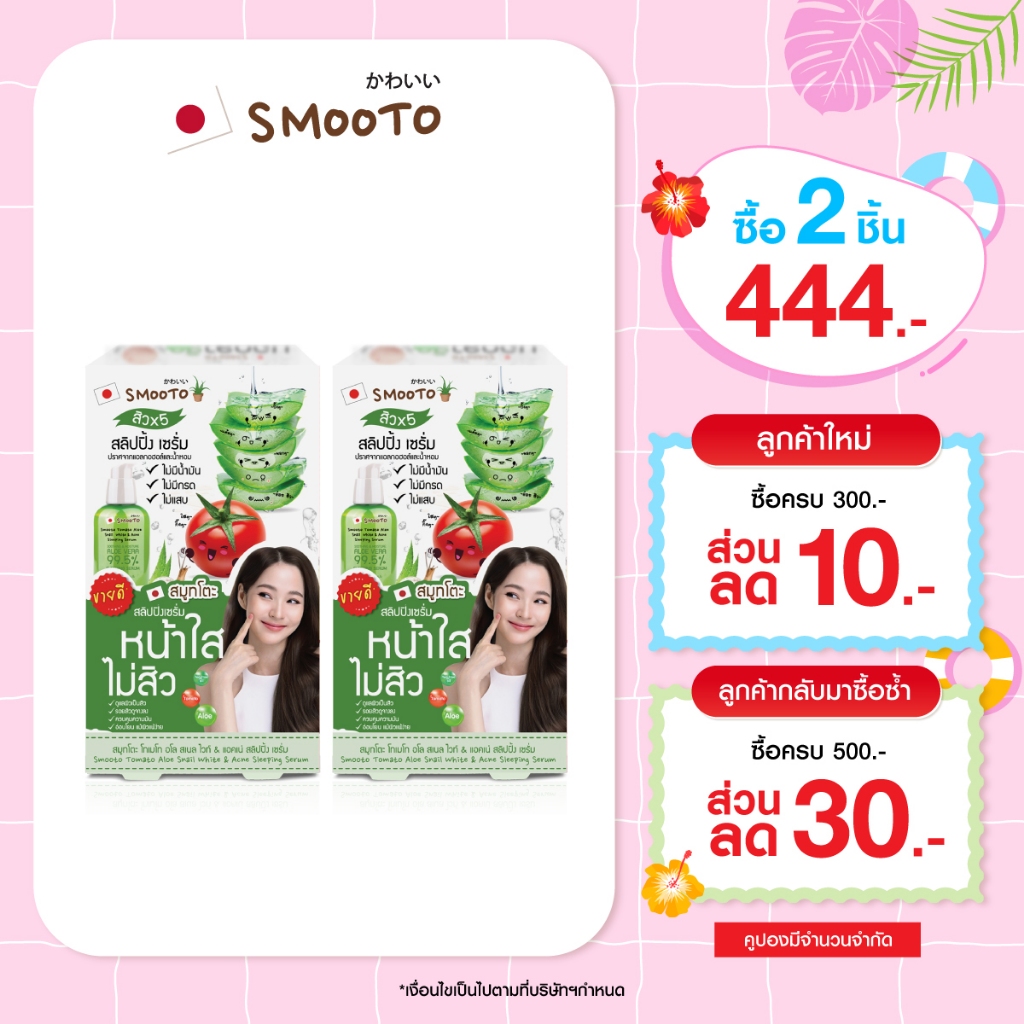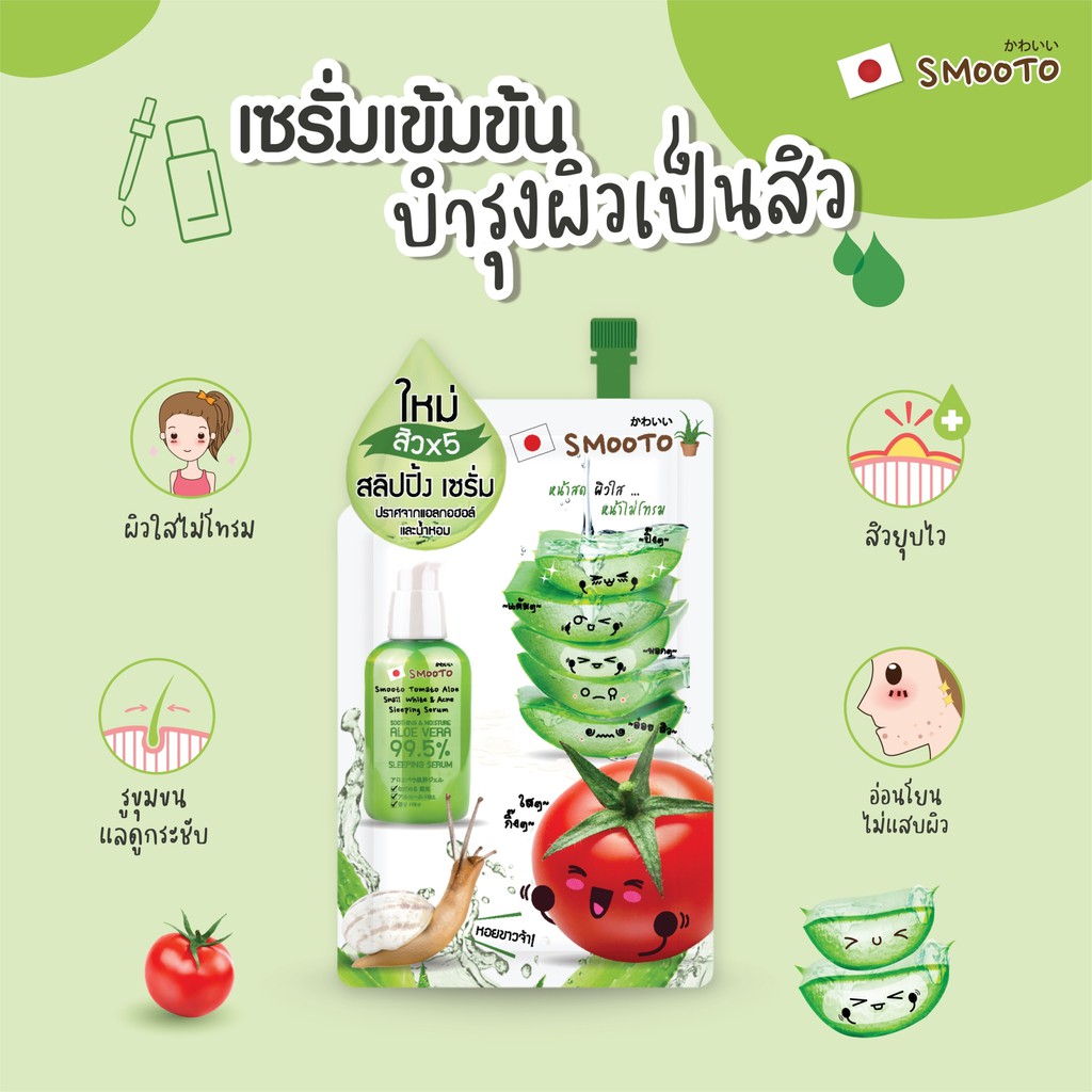 (ลดแรง) SMOOTO Official สมูทโตะ อโล สเนล ไวท์ & แอคเน่ สลิปปิ้ง เซรั่ม (SMT22/กล่อง)