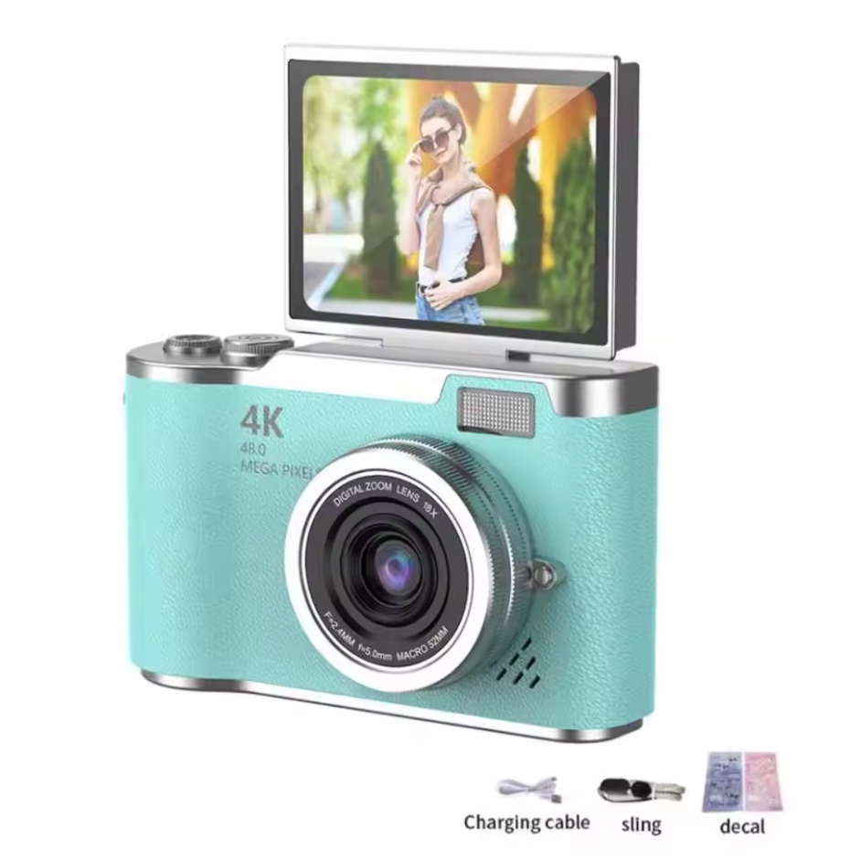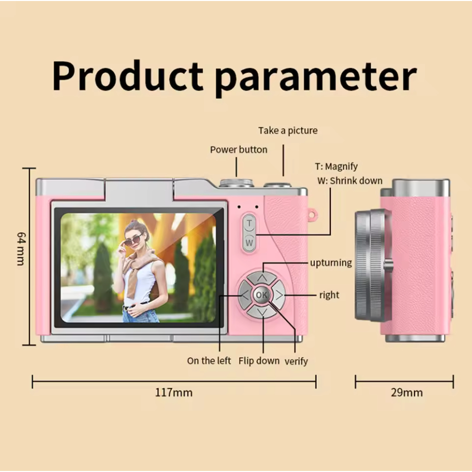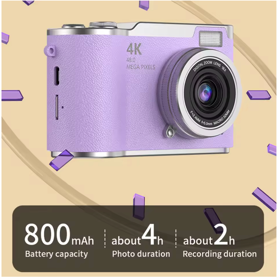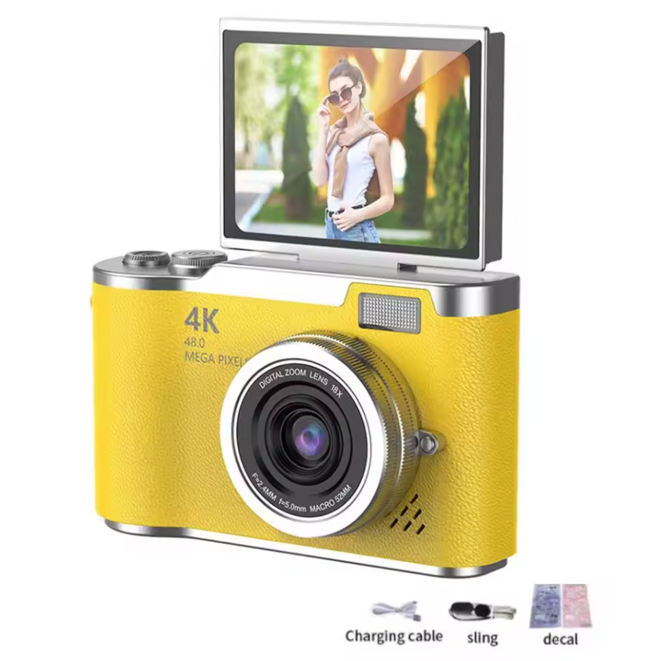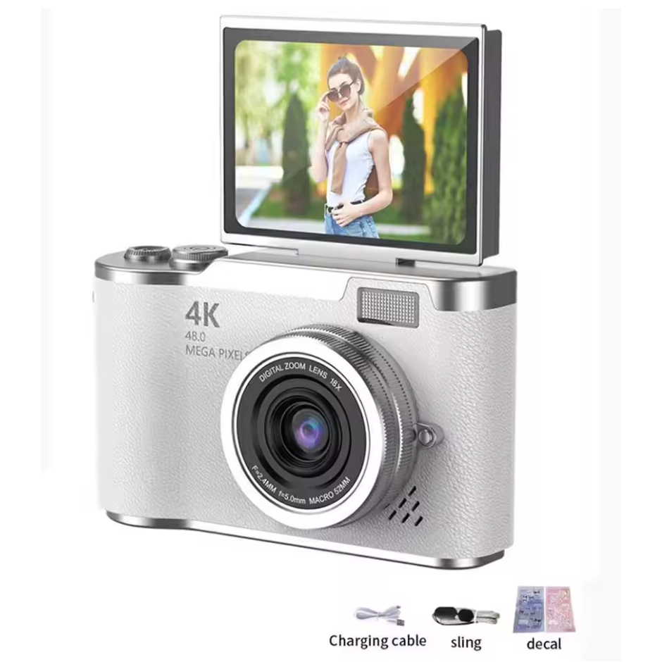 กล้องดิจิตอล 4K CCD 180° กล้องเซลฟี่หน้าจอพลิก 8X ซูมดิจิตอล 48MP กล้องถ่ายภาพดิจิตอลแบบพกพาพร้อมการ์ด 32ก