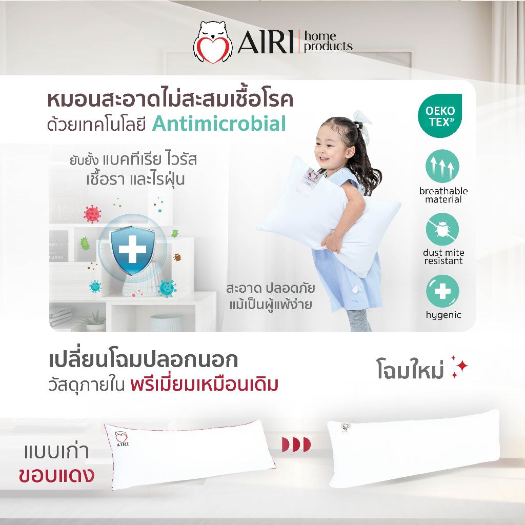 AIRI ไอริ หมอนบอดี้ใบยาว ปรับความแน่นได้ กอดสบาย ดันหลังเเก้กรดไหลย้อน รองเข่าลดเมื่อยล้า