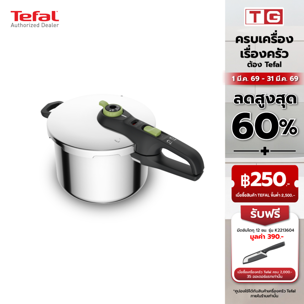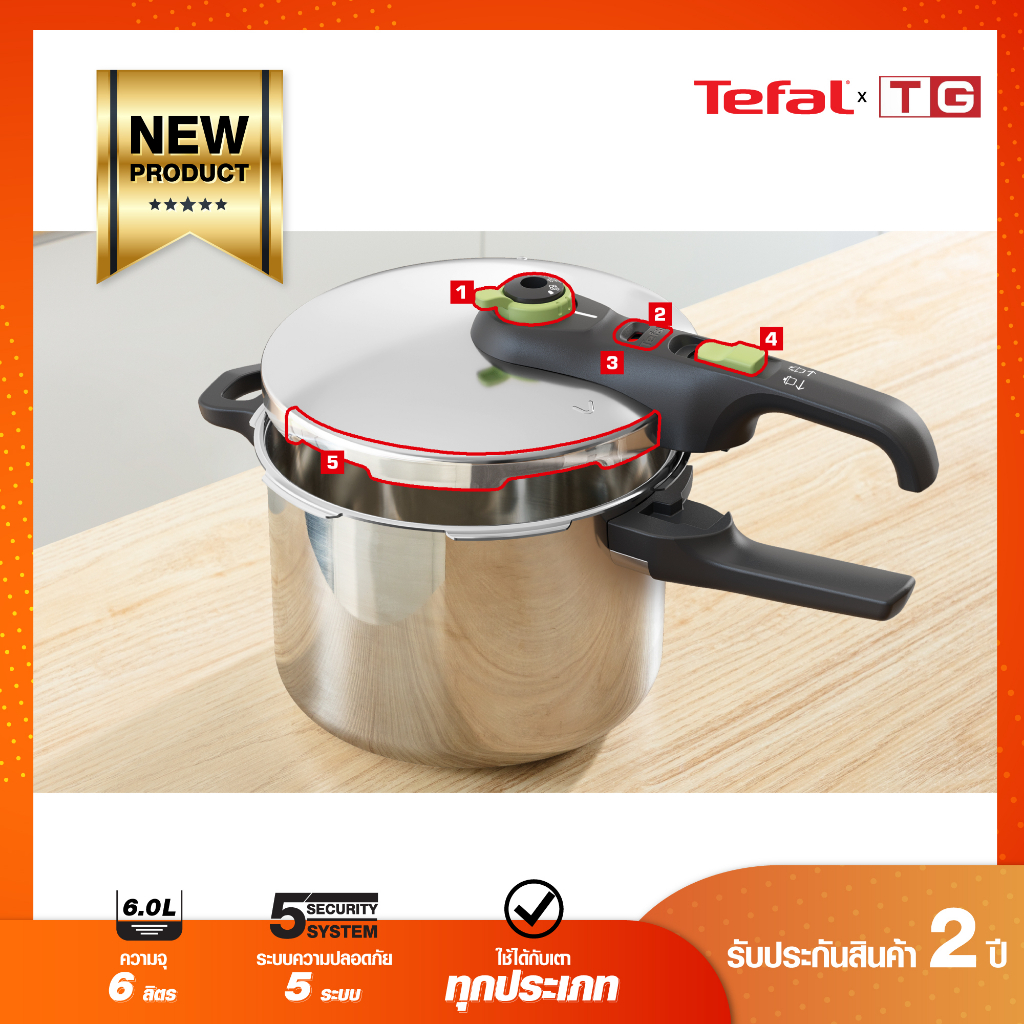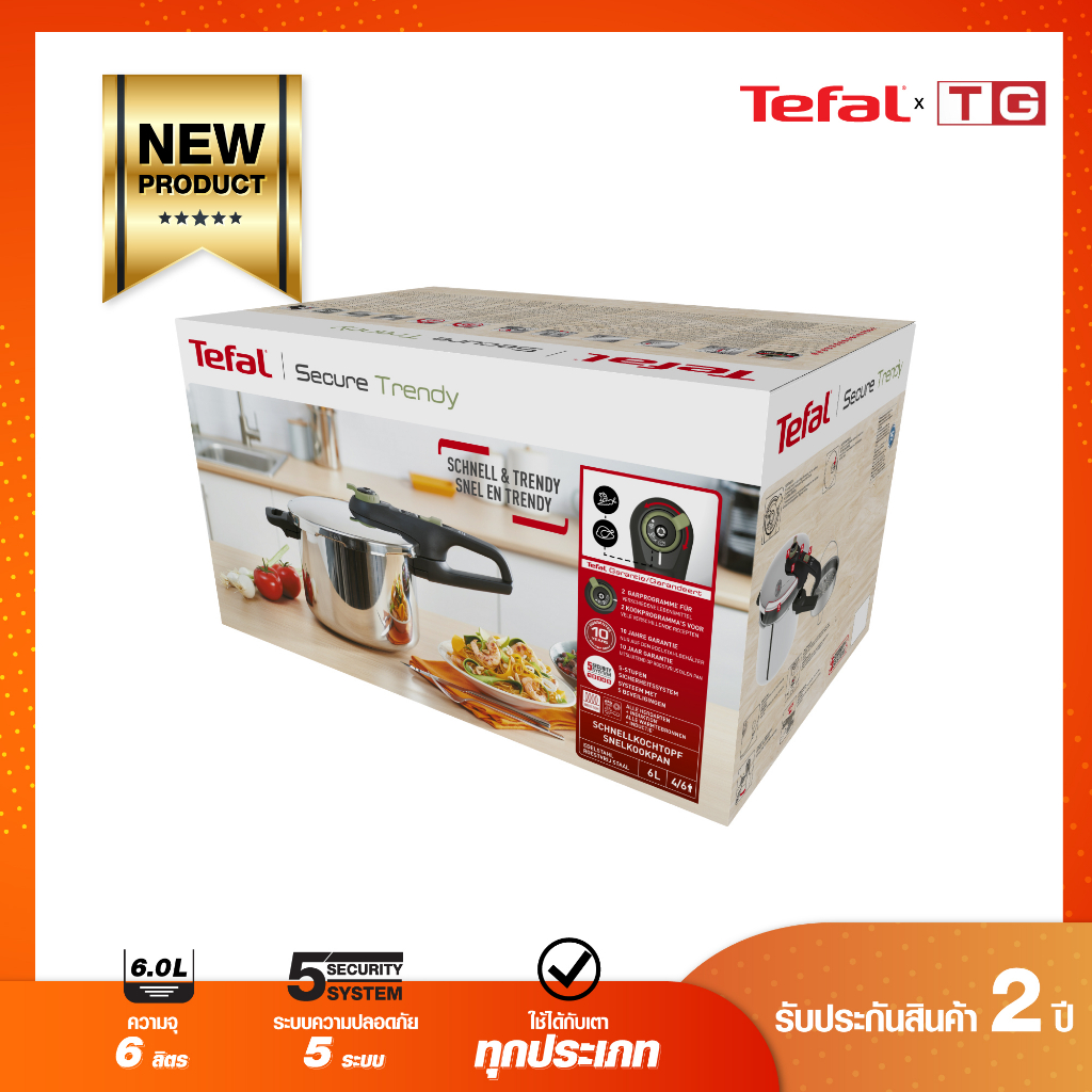 TEFAL หม้ออัดแรงดัน Secure Trendy รุ่น P2580702 ขนาด 6 ลิตร รับประกันศูนย์ 2ปี