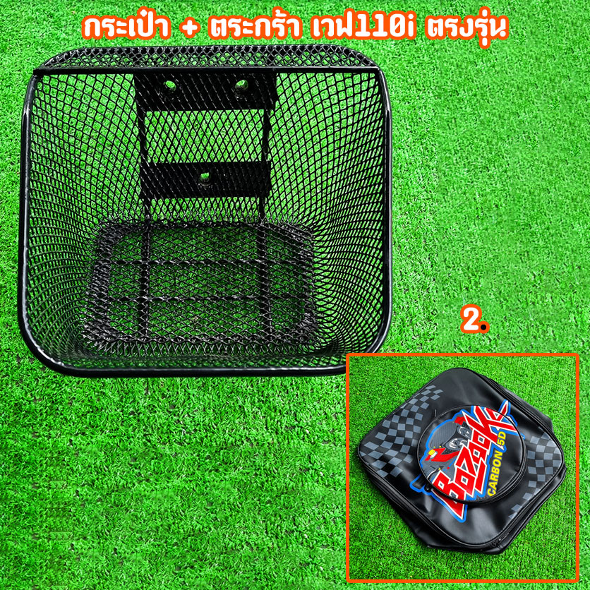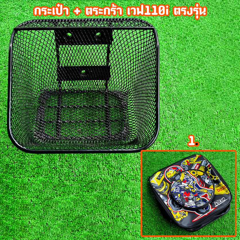 ตะกร้ารถ +กระเป๋า ซิบ งานสกีนลายสวย คม ชัด wave110i เวฟ110i ตรงรุ่น ปี2011-2025 หนาพิเศษ เคลือบกันสนิม