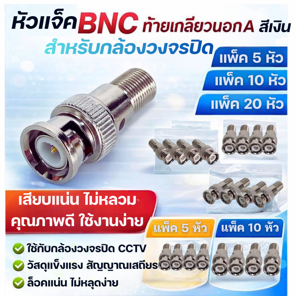 ราคาส่ง แพ็ค 5/10/20 หัว (สีเงิน)หัว BNC ท้าย F-Type ตัวผู้ เกลียว