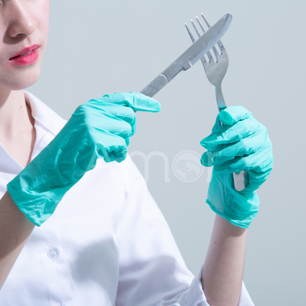 (Amorแท้) ถุงมือทำอาหารสีเขียว หนาพิเศษ ผลิตจากยางไนไตร ถุงมือร้านอาหาร ปลอดภัยมาตรฐานFood Grade ไม่มีแป้ง 100ชิ้น/กล่อง