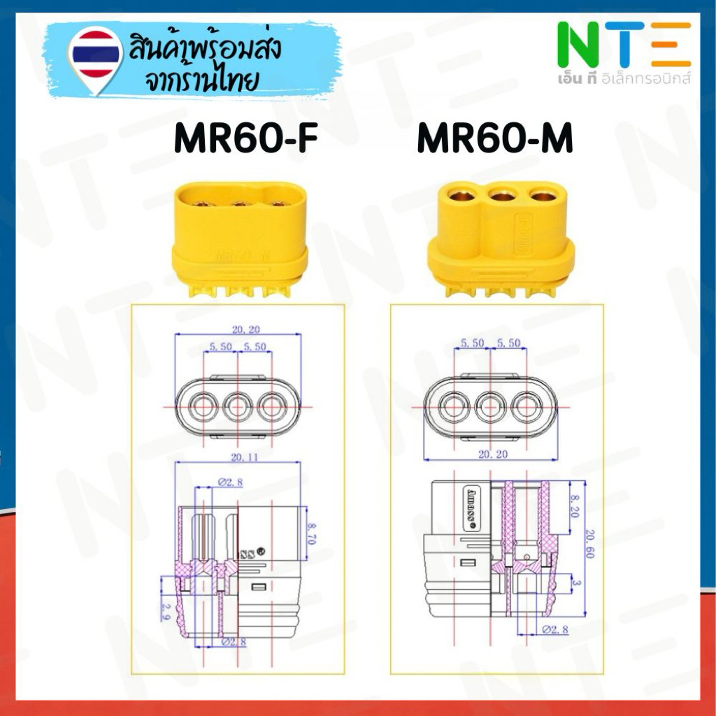 (ขายเป็นคู่)ปลั๊ก คอนเน็กเตอร์ MR30 MR60 สำหรับงานกำลัง 3 สาย แบตเตอรี่ งานโดรน DIY