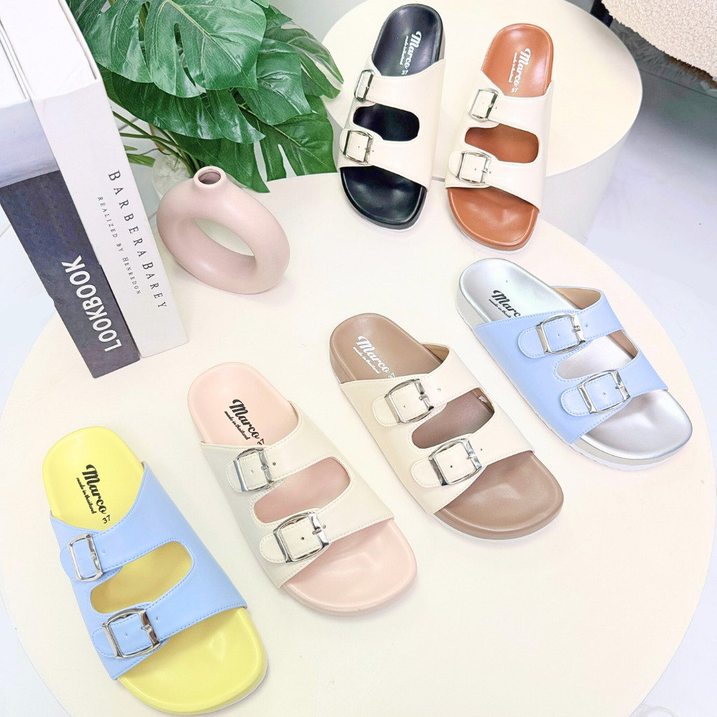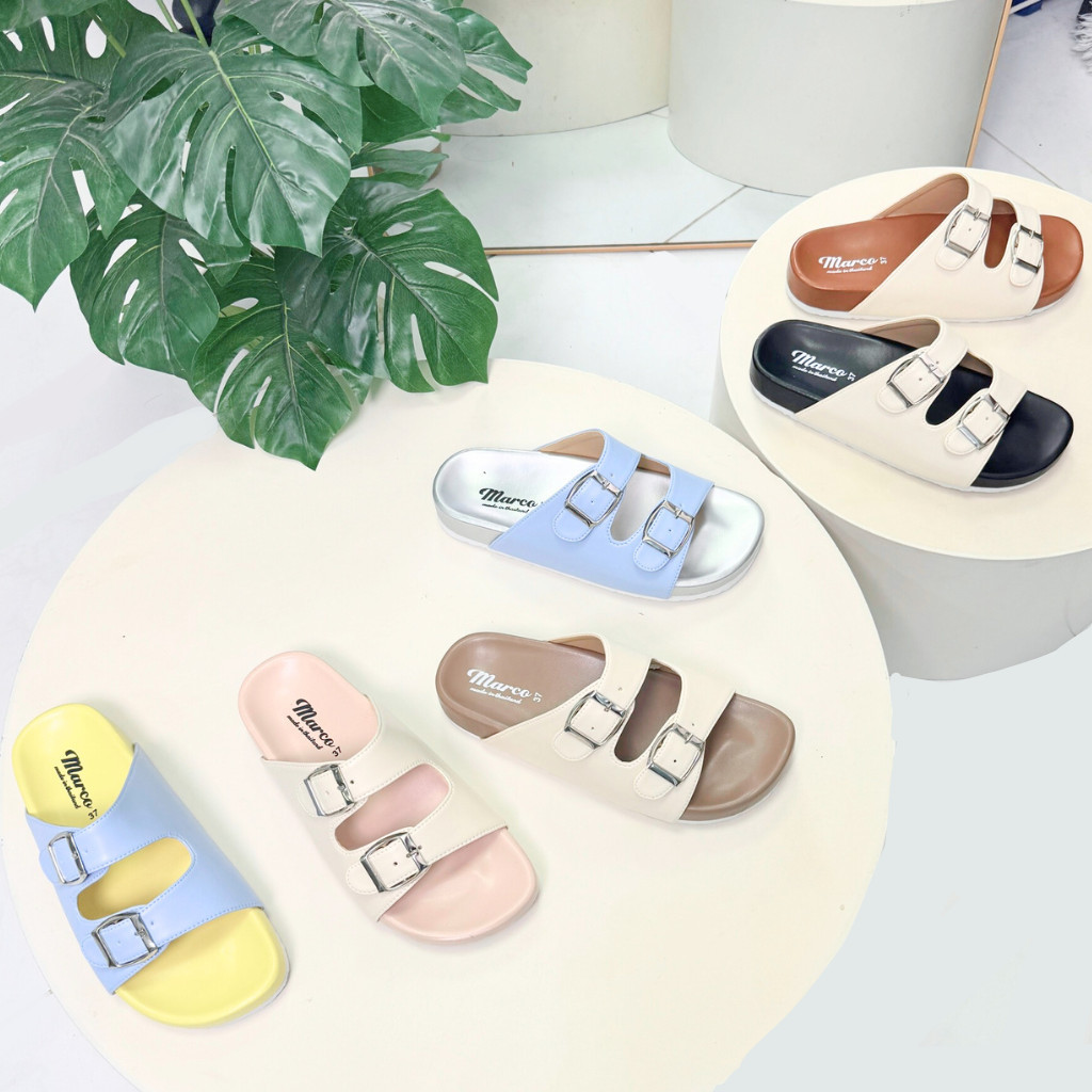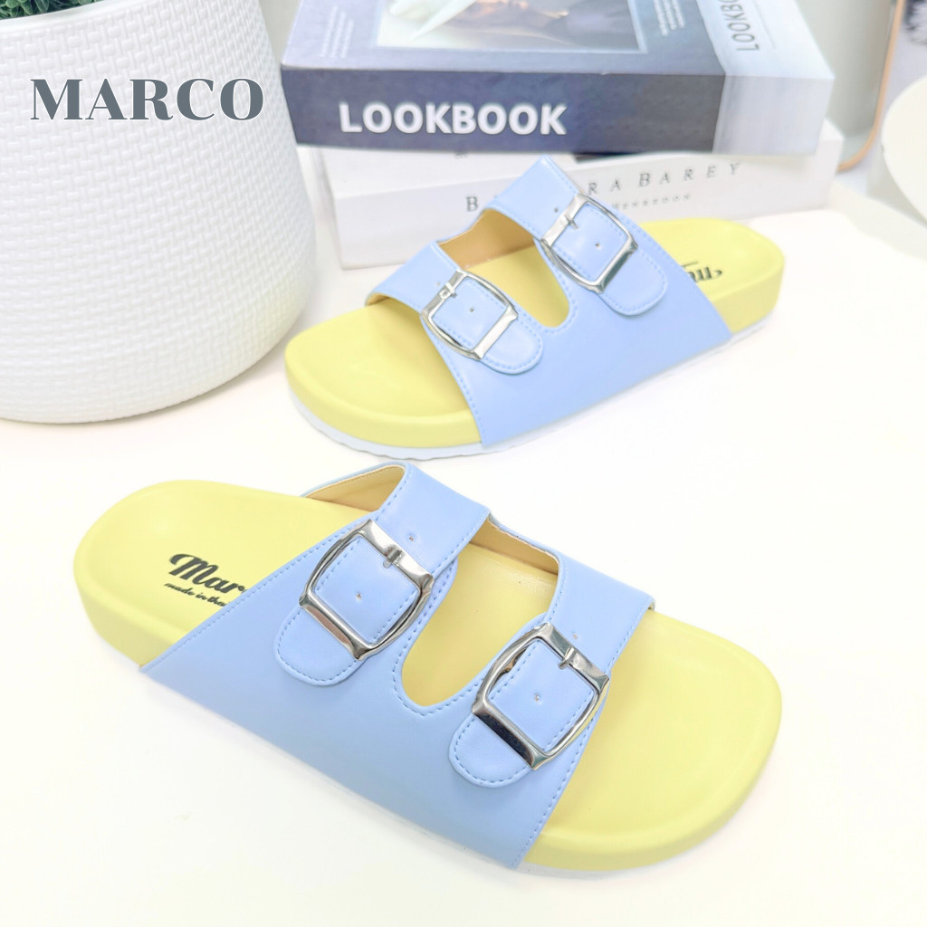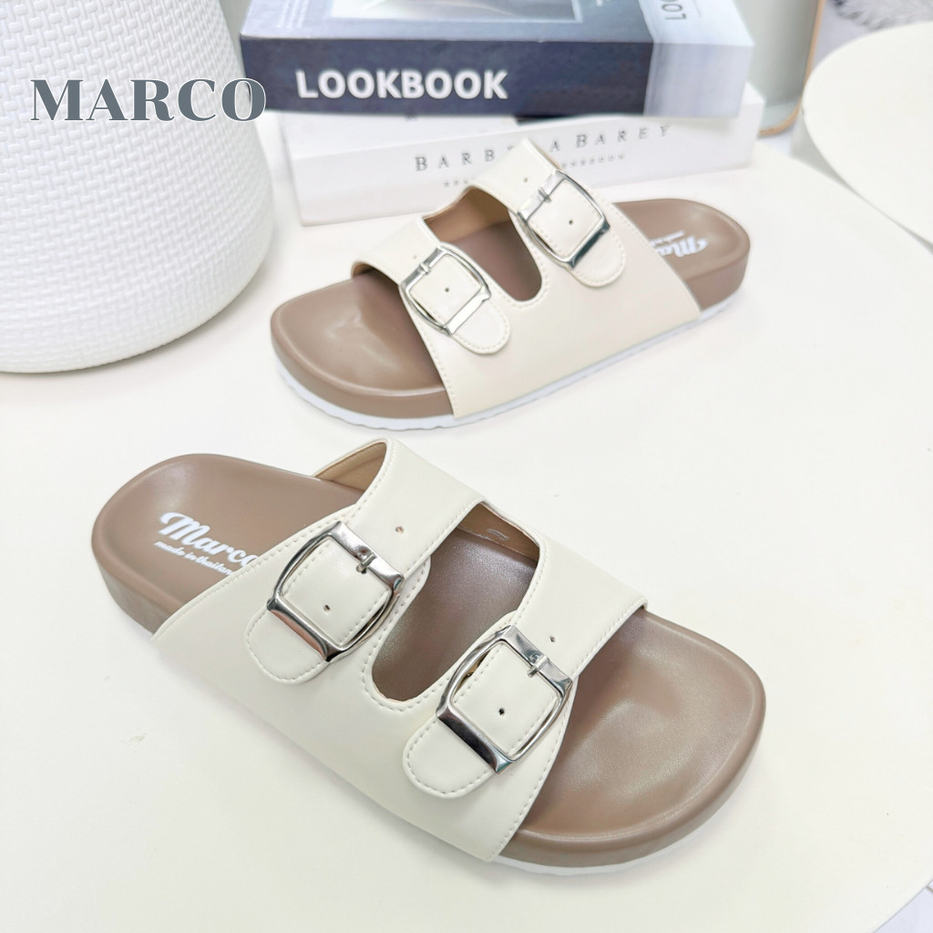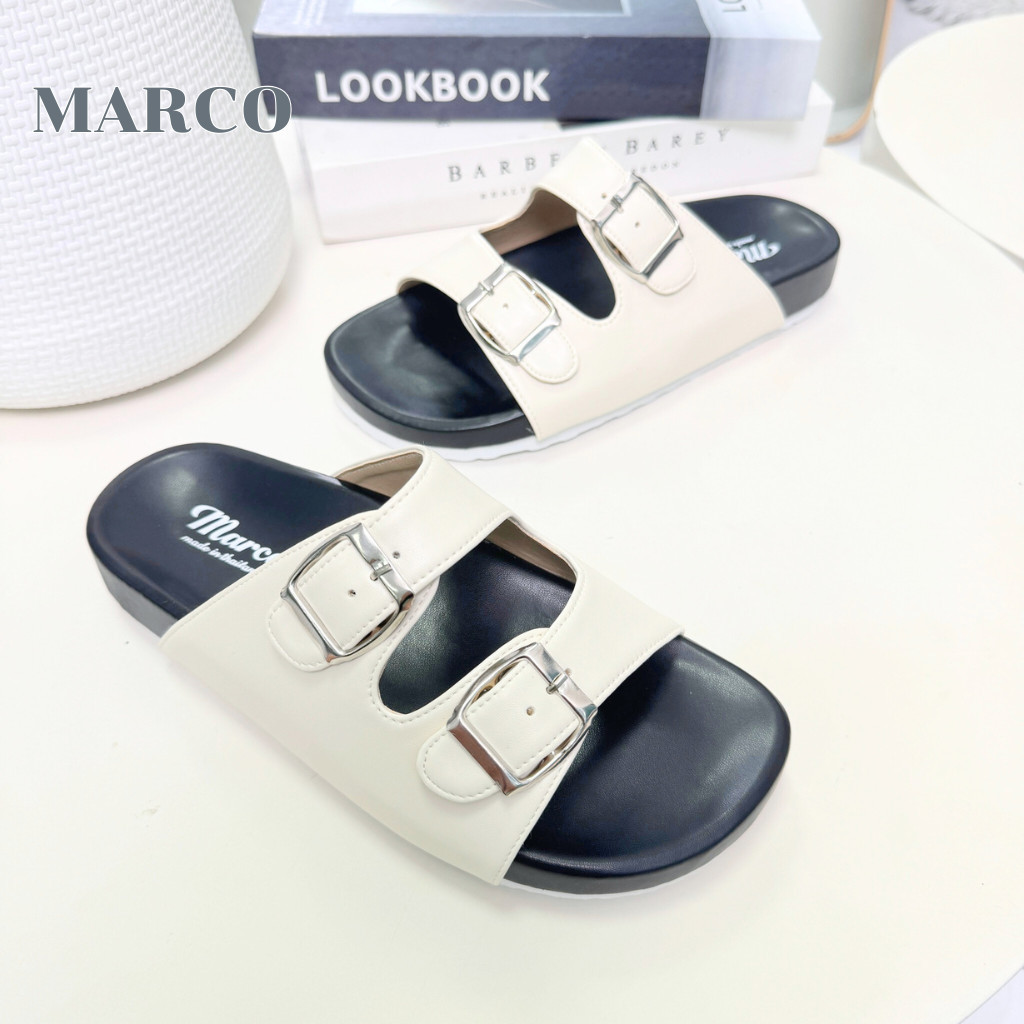 รองเท้าแตะ แบรนด์ MARCO รุ่น G1007 คาดเข็มขัด 2 ชั้น พื้นไบเก้น