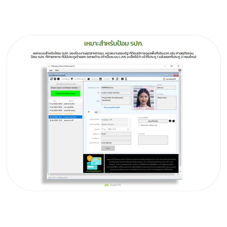 Guard 4.0 รุ่น LAN : ซอฟต์แวร์สำหรับป้อม รปภ. ต่อกับเครื่องอ่านบัตรประชาชน เพื่อบันทึกการเข้า-ออกสถานที่, ตรวจสอบนัดหมาย