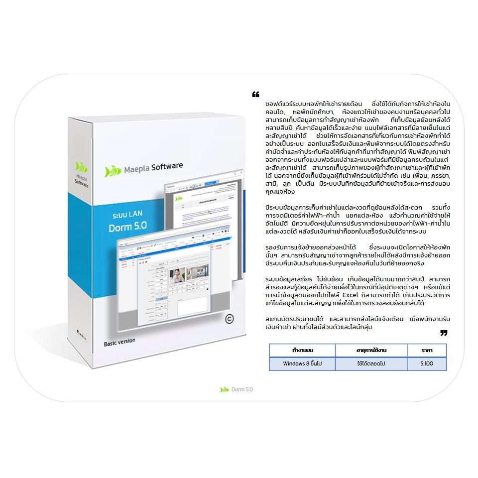 Dorm 5.0 LAN : โปรแกรมหอพักรายเดือน ใช้กับกิจการให้เช่าห้องในคอนโด, หอพักนักศึกษา, ห้องแถวให้เช่าคนงาน-บุคคลทั่วไป.