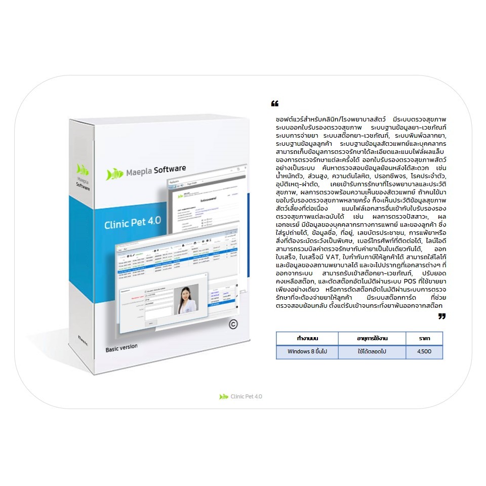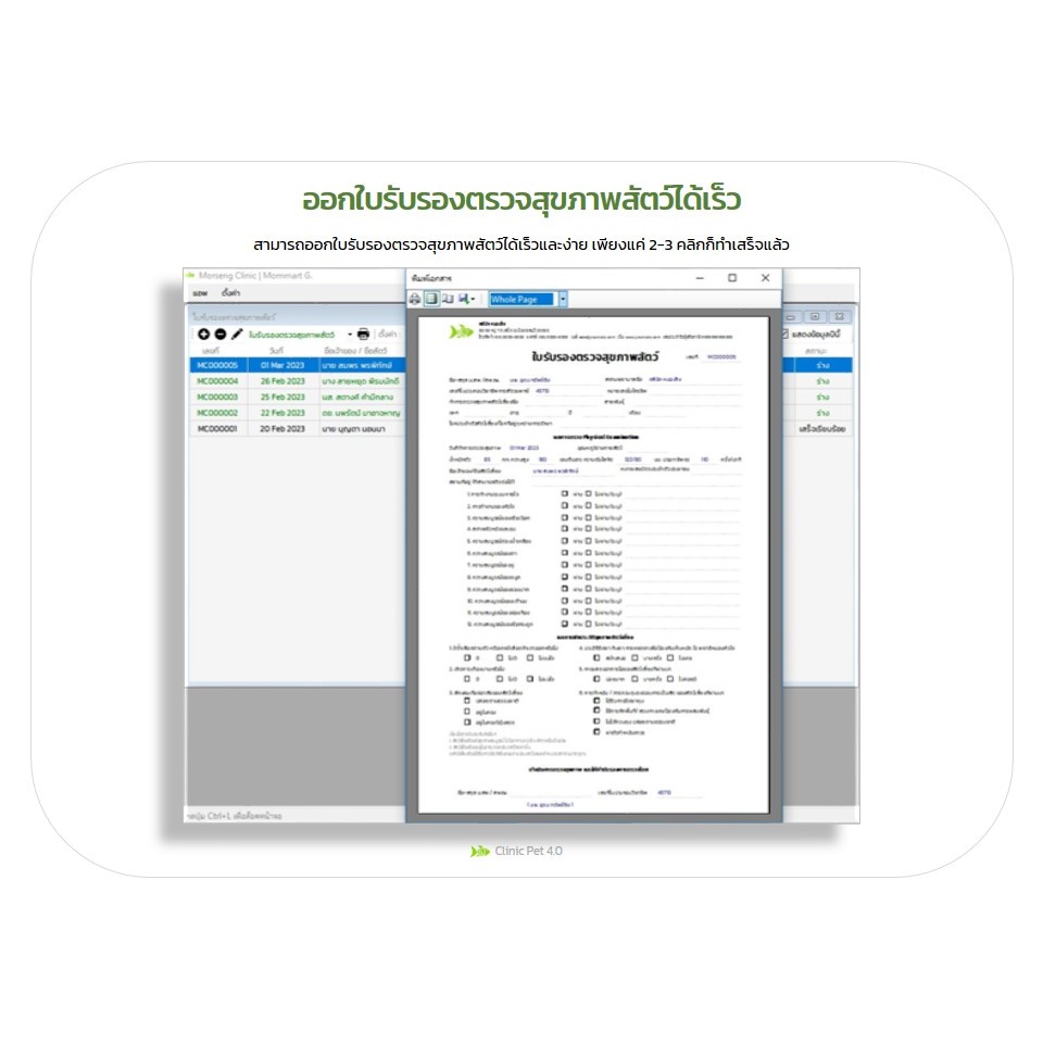โปรแกรม Clinic Pet 4.0 : ซอฟต์แวร์คลินิก/รพ.สัตว์ มีระบบตรวจ ระบบใบรับรองสุขภาพ ระบบฐานข้อมูลยา ระบบจ่ายยา ระบบสต๊อกยา