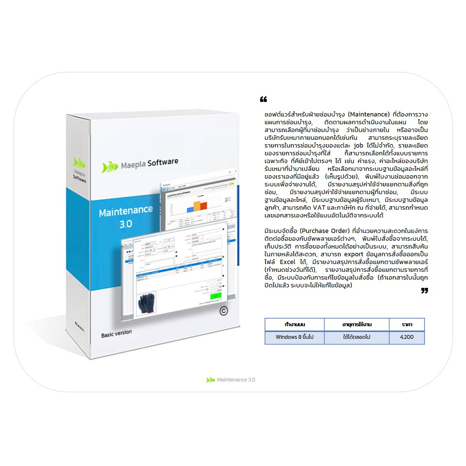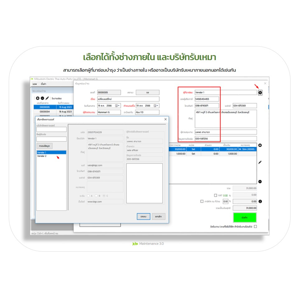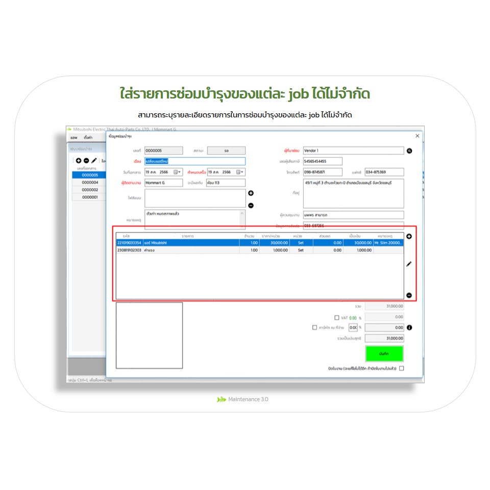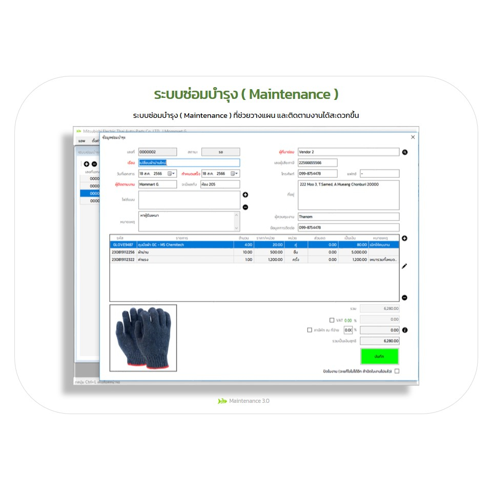 โปรแกรมคอมพิวเตอร์ Maintenance 3.0 : ซอฟต์แวร์สำหรับฝ่ายซ่อมบำรุง (Maintenance) ที่ต้องการทำงานเป็นระบบและเป็นมืออาชีพ