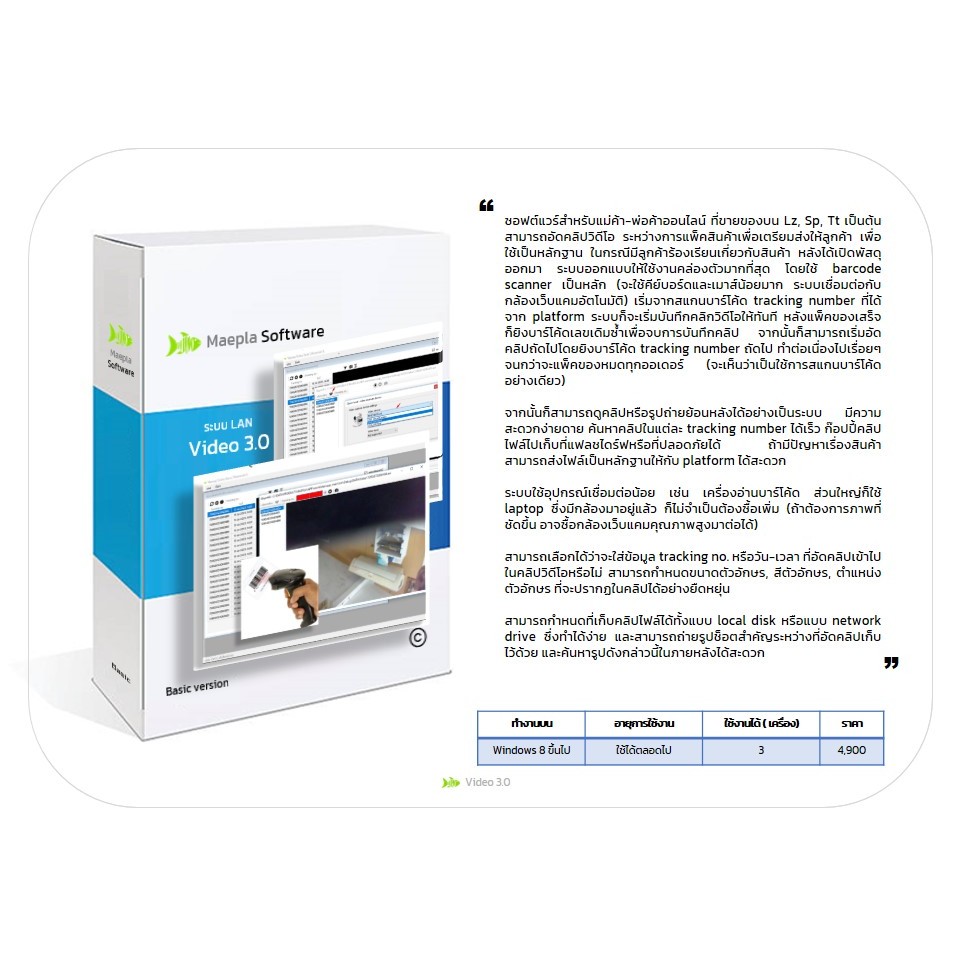 Video 3.0 รุ่น LAN : ซอฟต์แวร์สำหรับแม่ค้าออนไลน์ อัดคลิปวิดีโอระหว่างการแพ็คของเพื่อส่งลูกค้า
