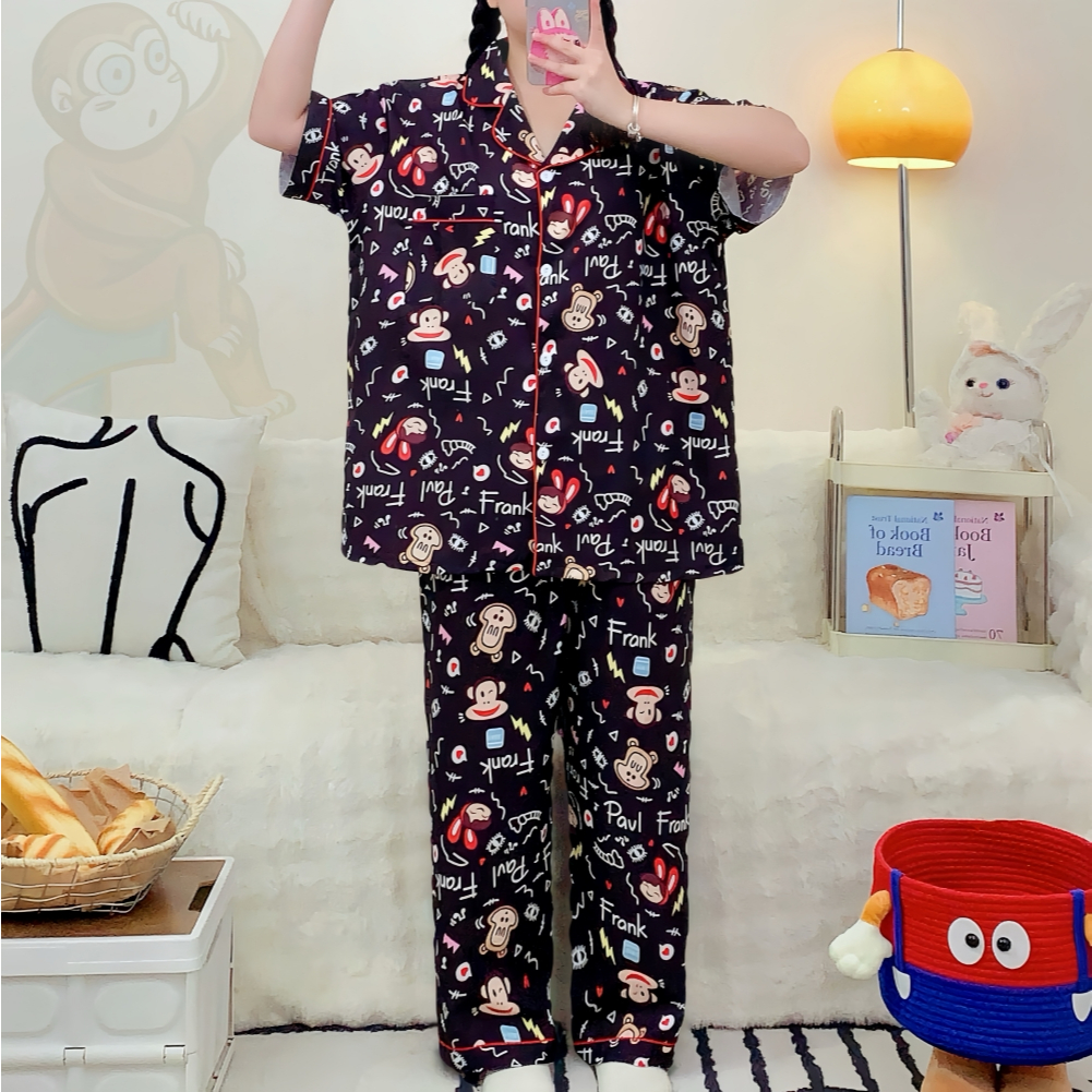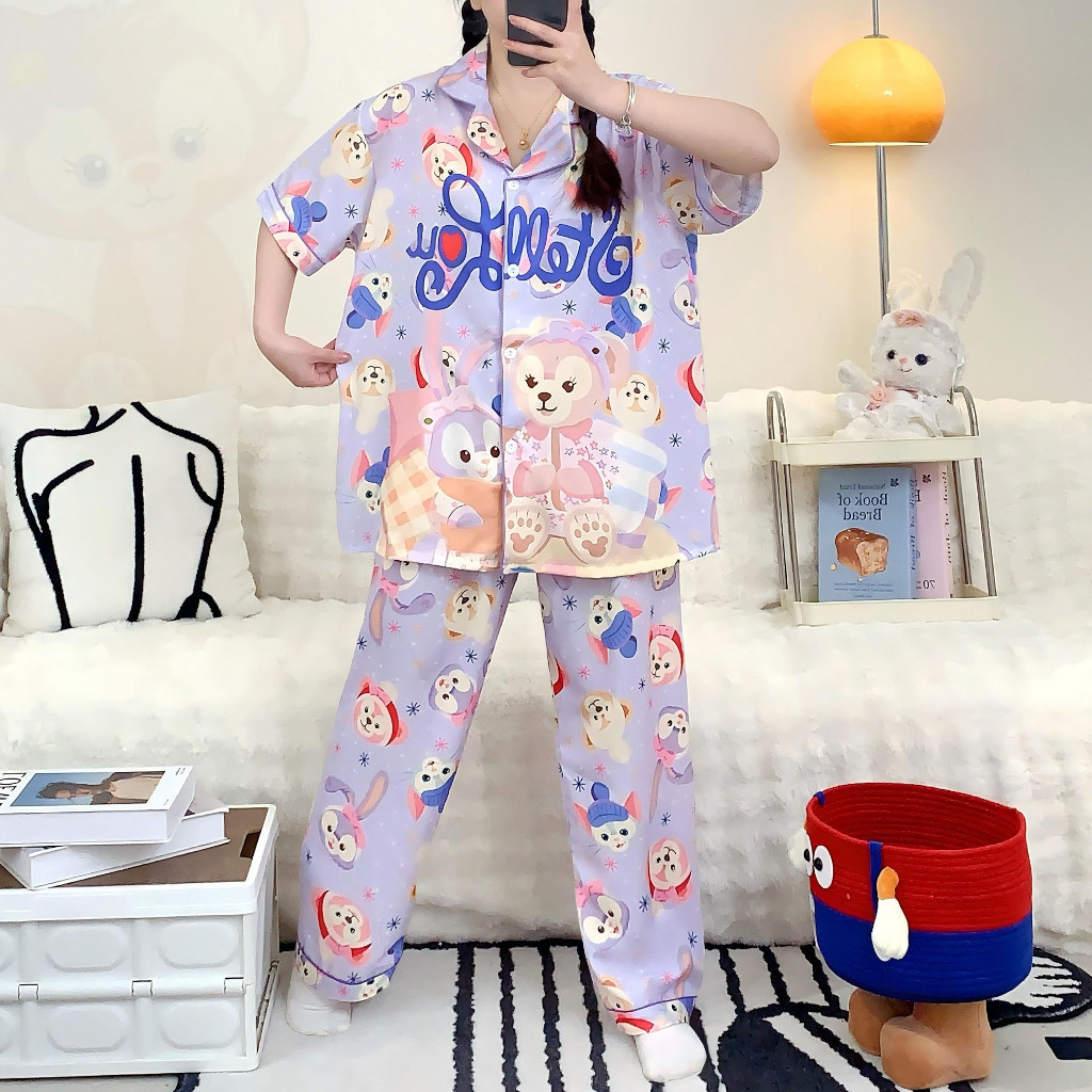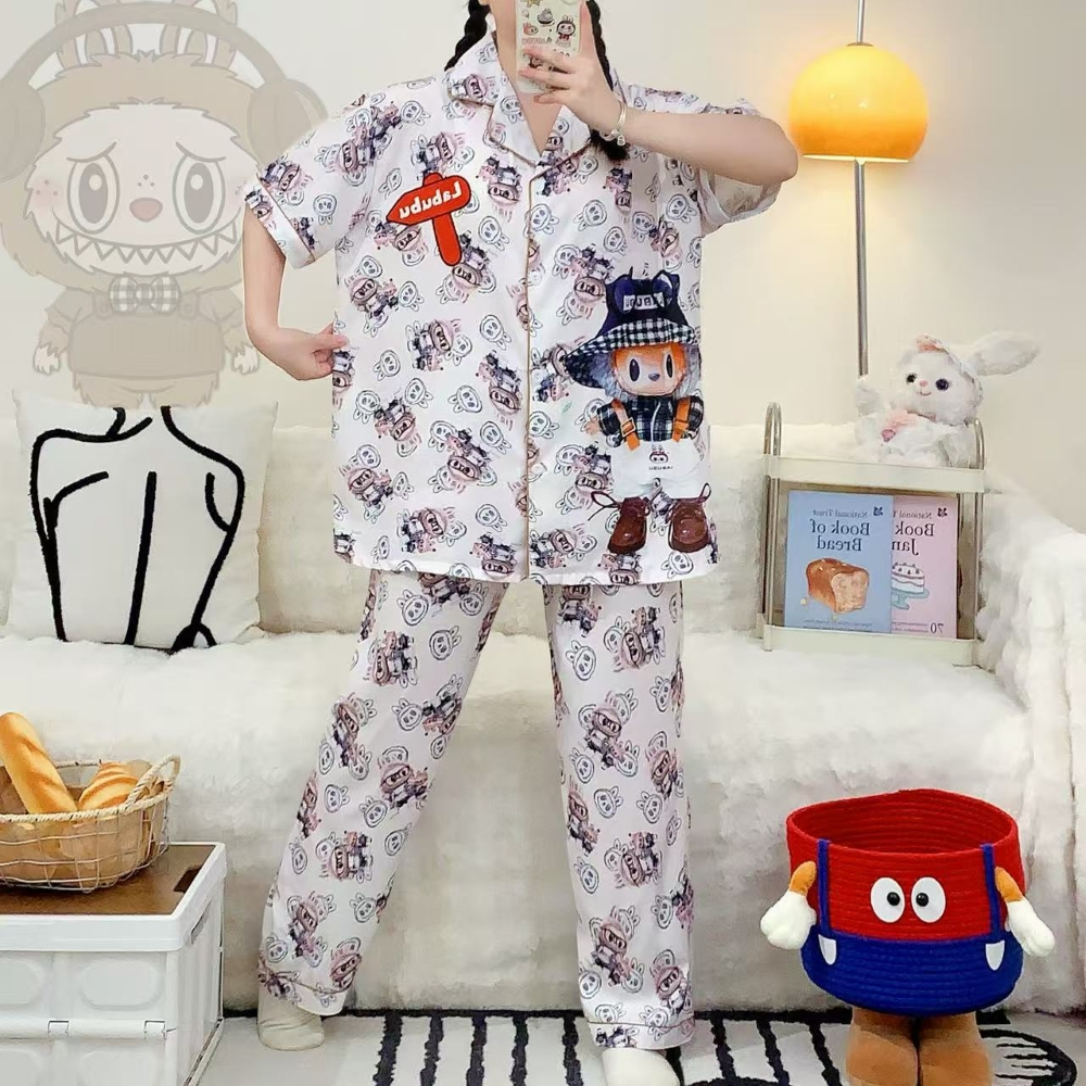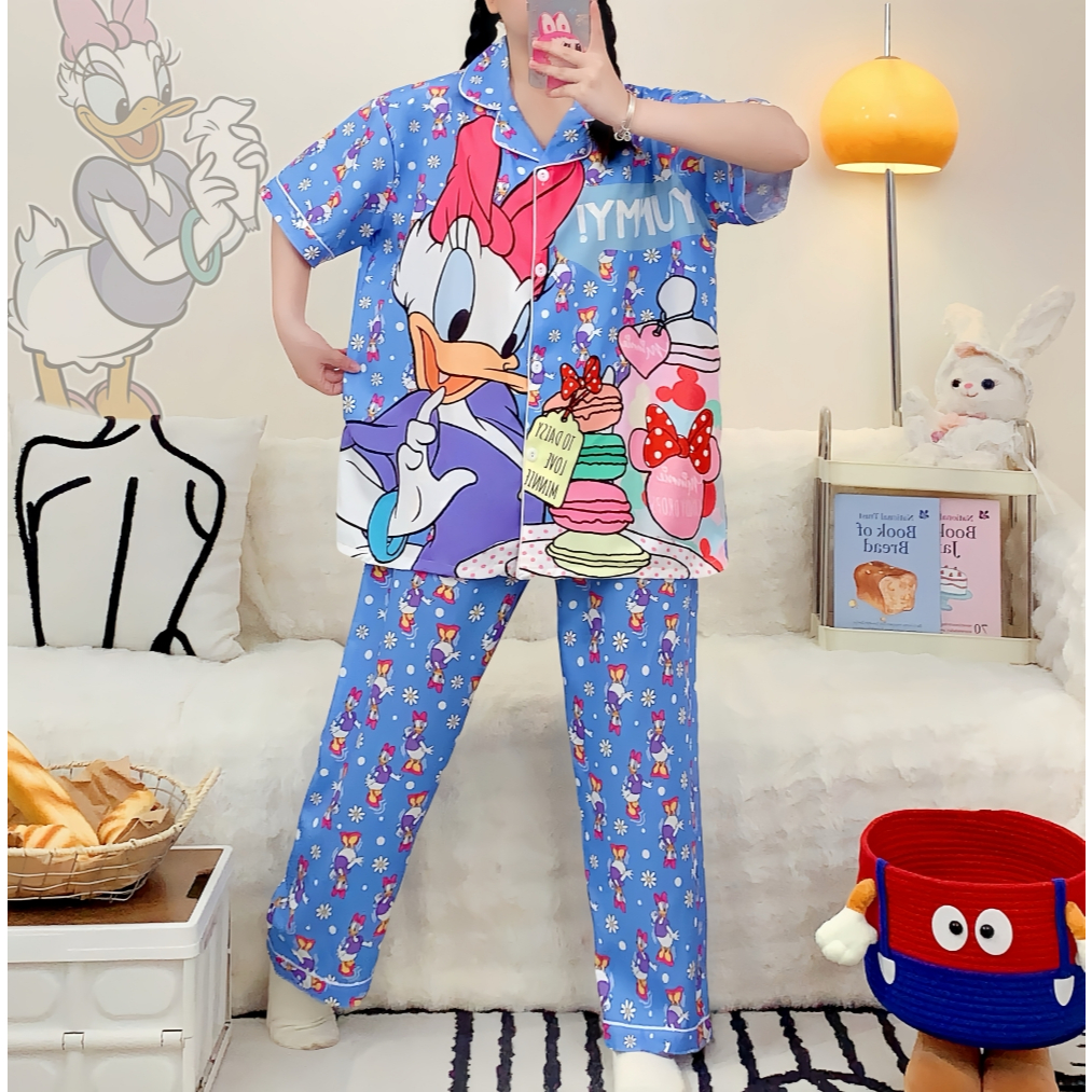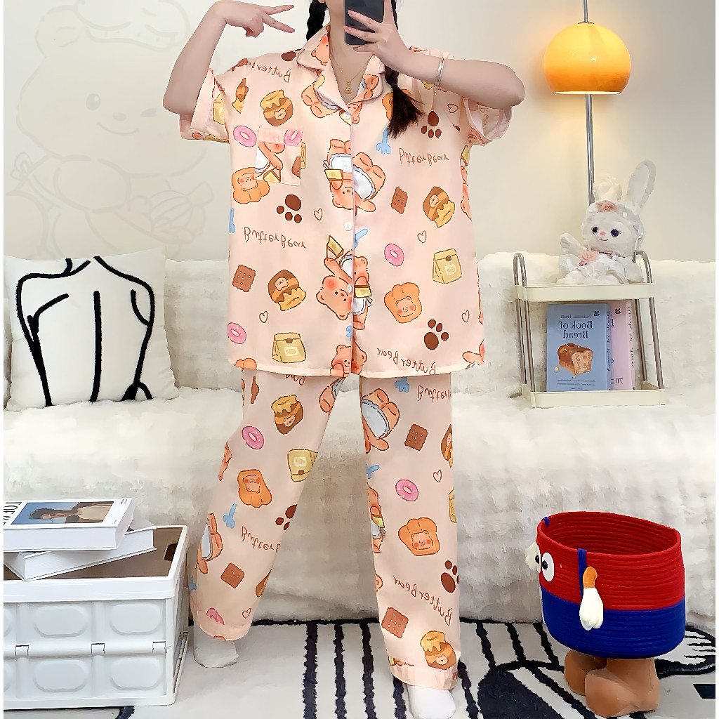 387 SBT ชุดนอนผู้หญิงผ้าไหมอิตาลีทิ้งตัว ชุดนอนโอเวอร์ไซส์ อก 46 แขนสั้น ขายาว ฟรีไซส์ ใส่สบาย (สินค้าพร้อมส่ง)