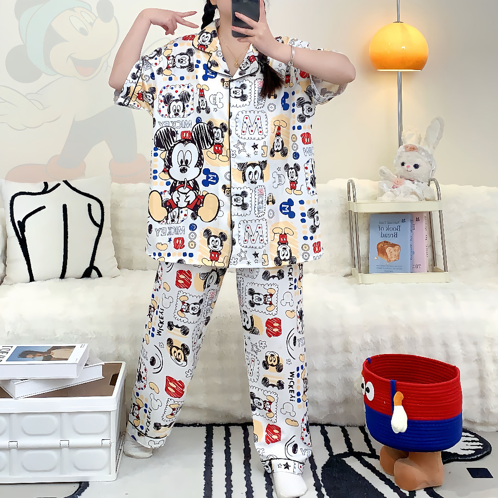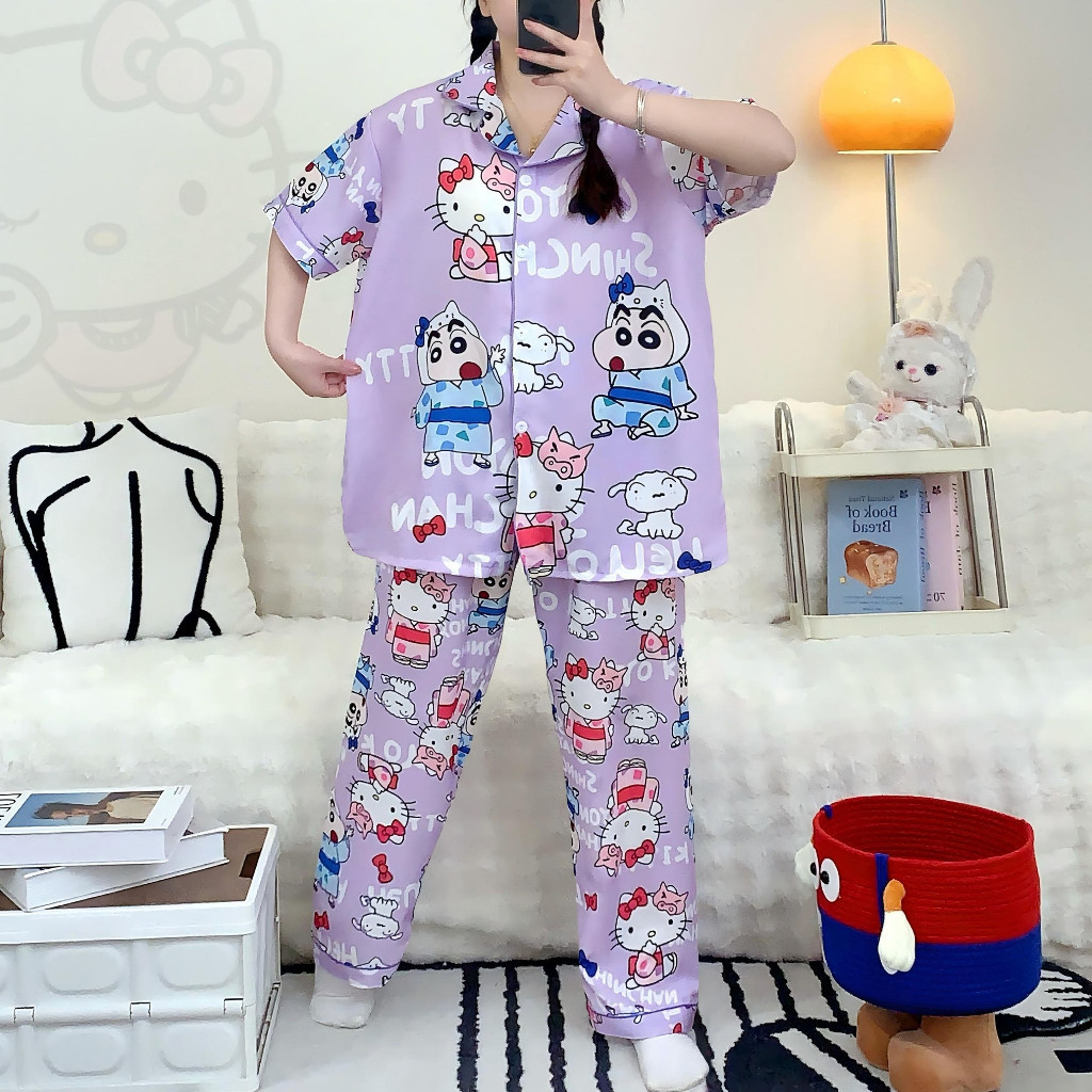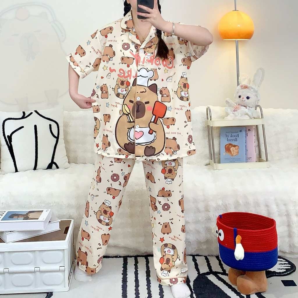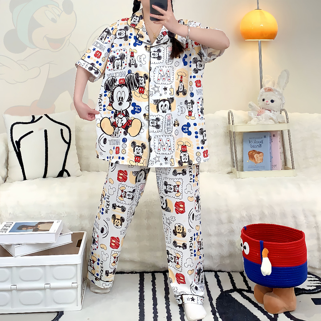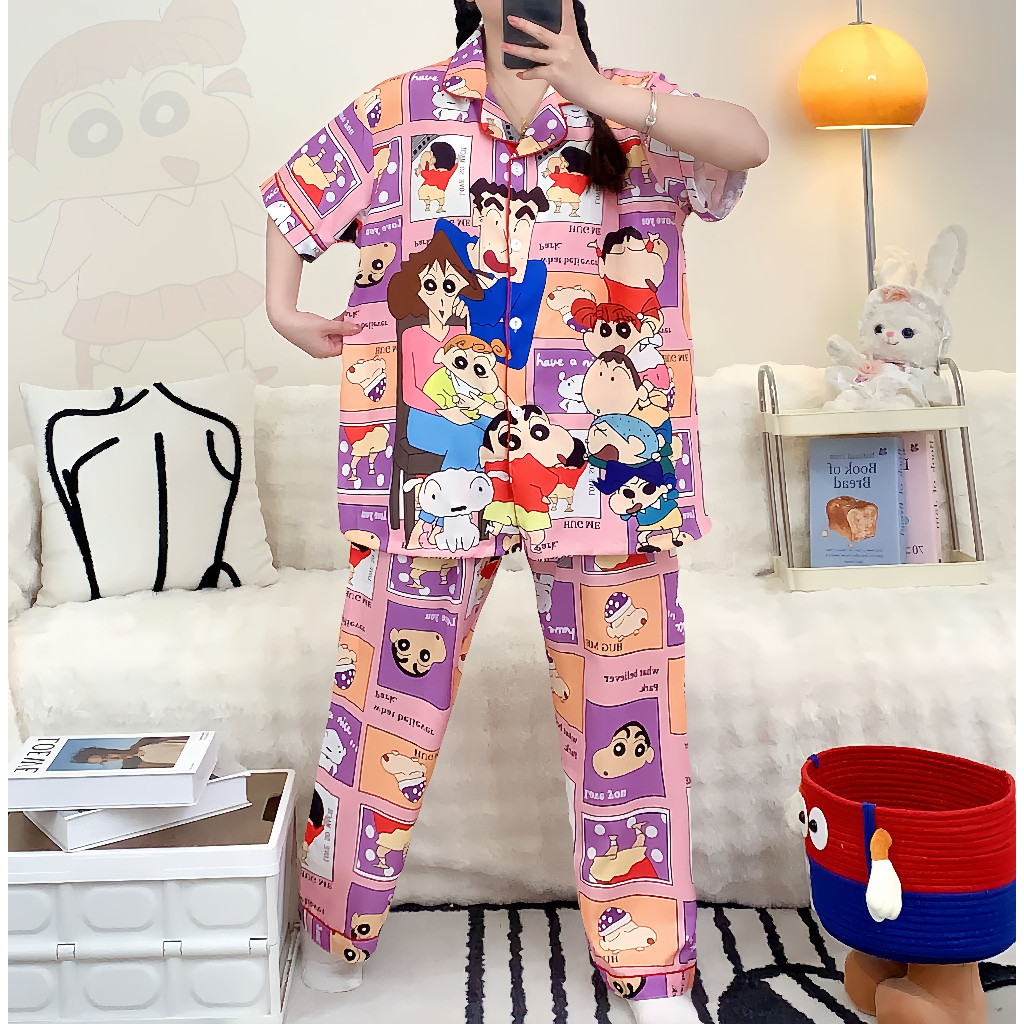 387 SBT ชุดนอนผู้หญิงผ้าไหมอิตาลีทิ้งตัว ชุดนอนโอเวอร์ไซส์ อก 46 แขนสั้น ขายาว ฟรีไซส์ ใส่สบาย (สินค้าพร้อมส่ง)