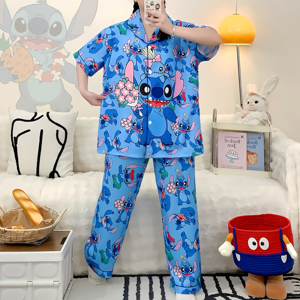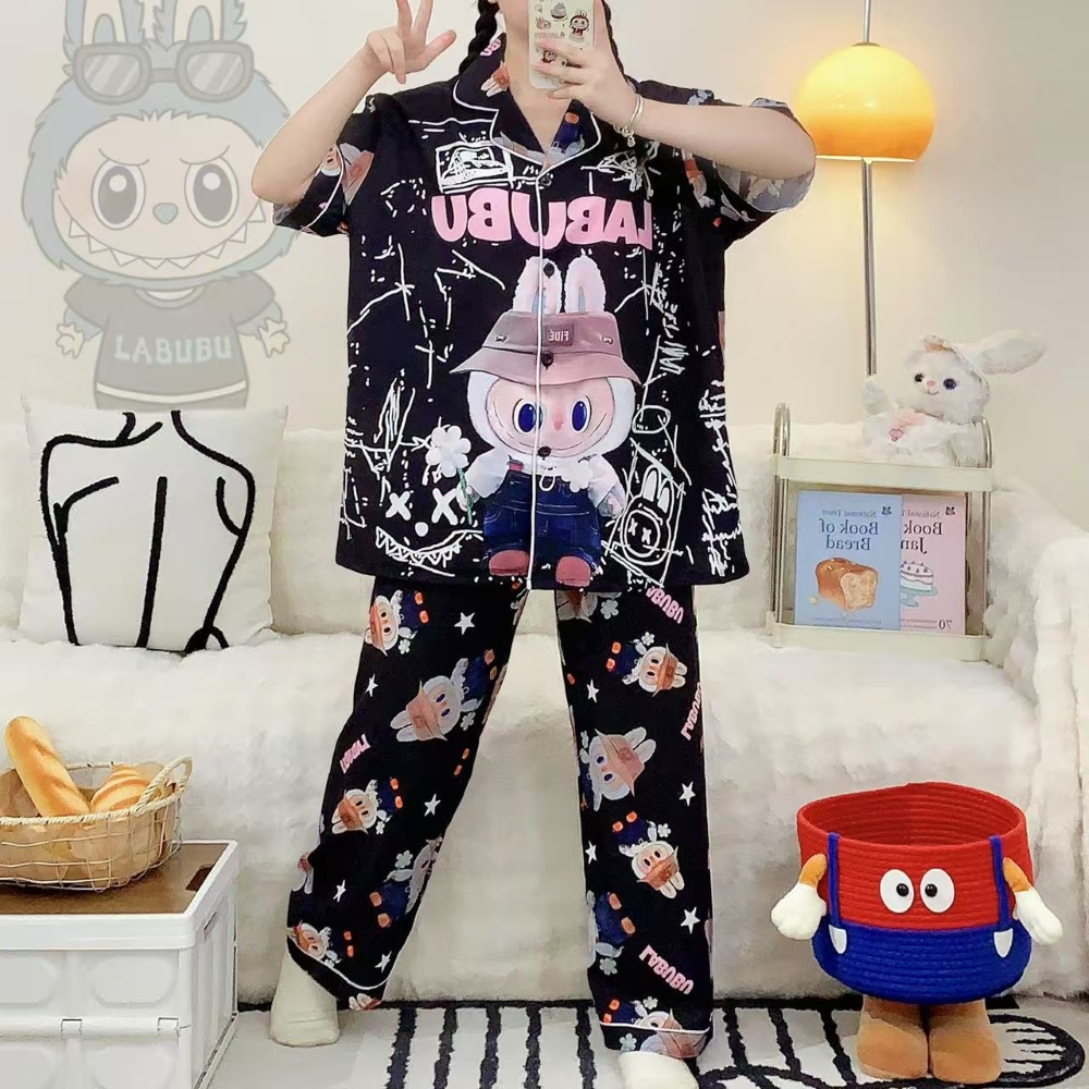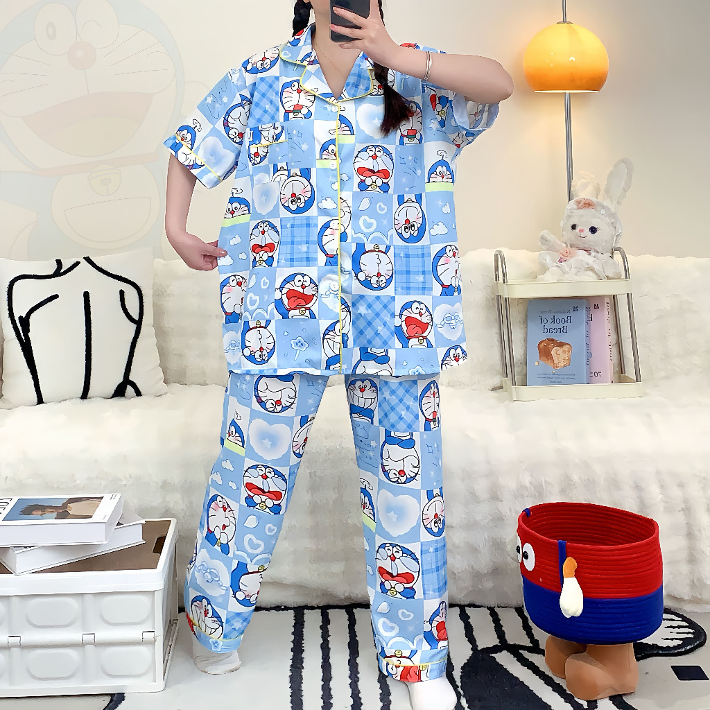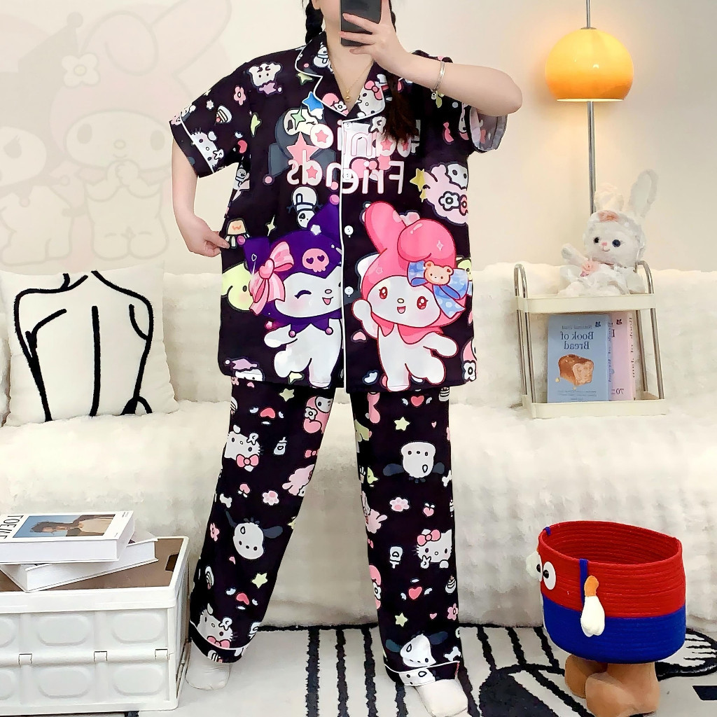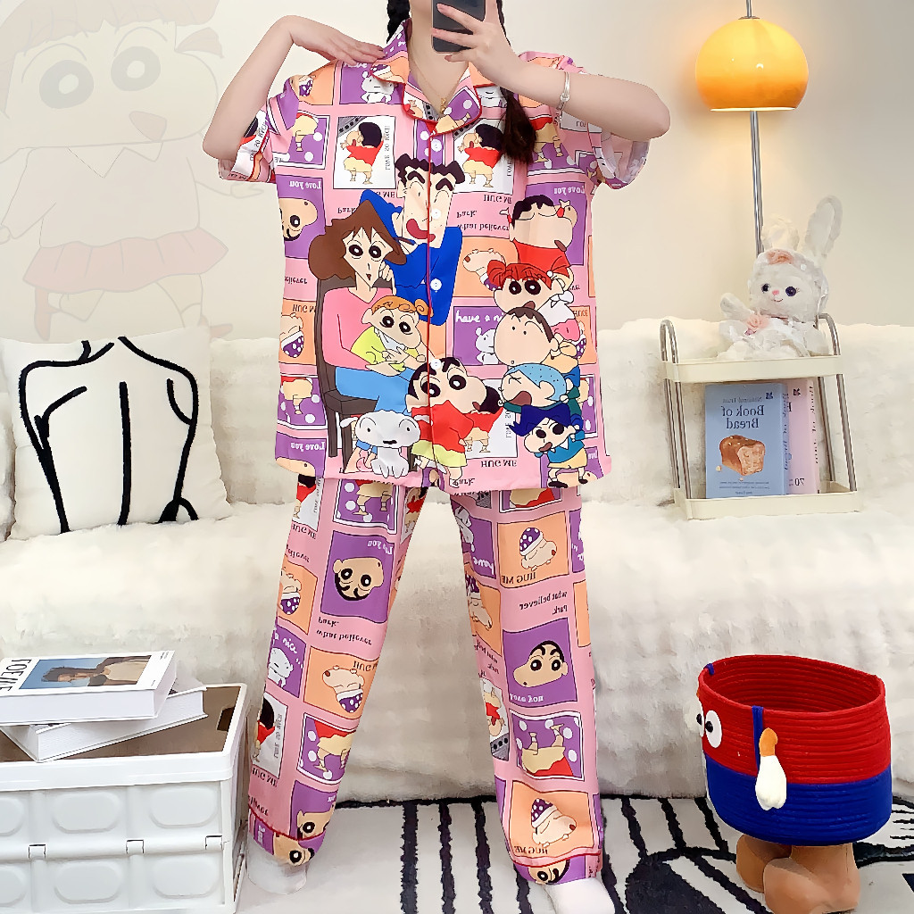 387 SBT ชุดนอนผู้หญิงผ้าไหมอิตาลีทิ้งตัว ชุดนอนโอเวอร์ไซส์ อก 46 แขนสั้น ขายาว ฟรีไซส์ ใส่สบาย (สินค้าพร้อมส่ง)