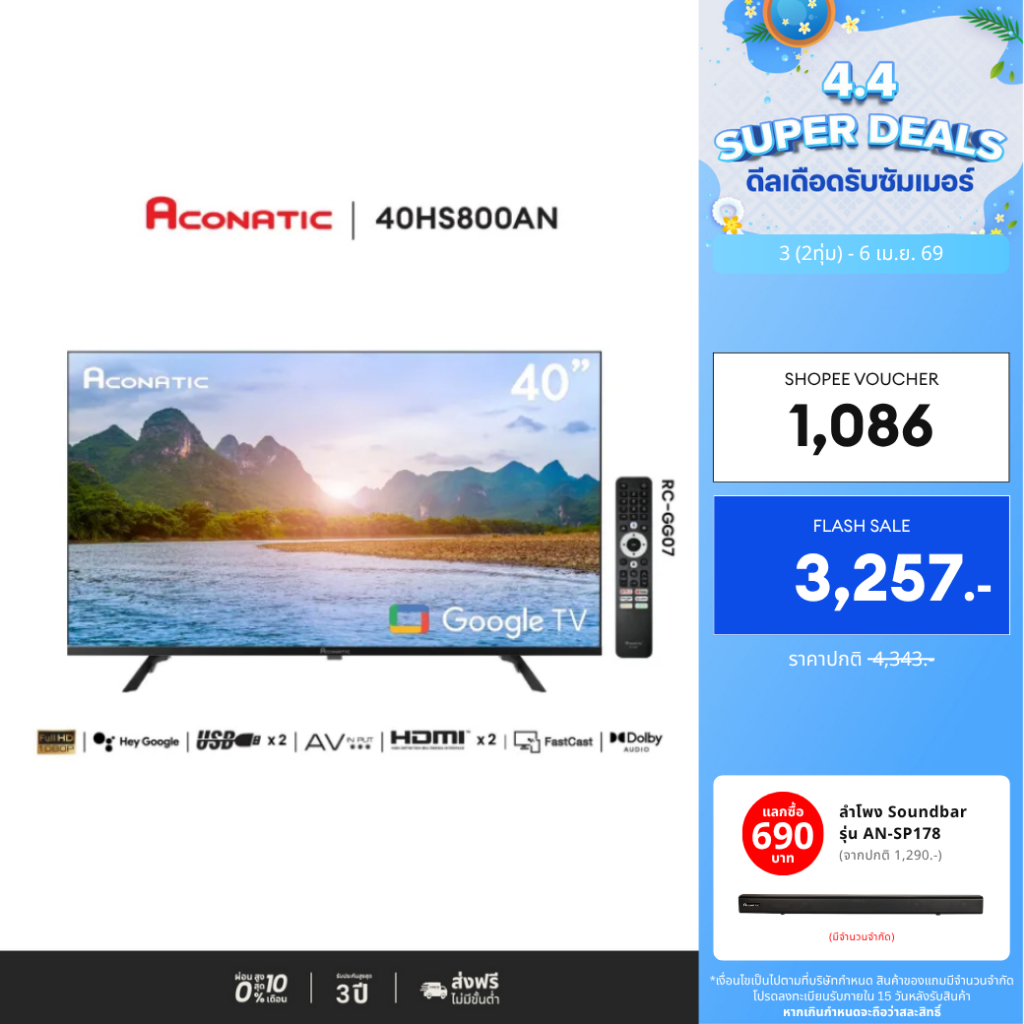 [New] ACONATIC Smart TV Google FHD LED รุ่น 40HS800AN ขนาด 40 นิ้ว Youtube Netflix Disney Wi-Fi (รับประกัน 3 ปี)