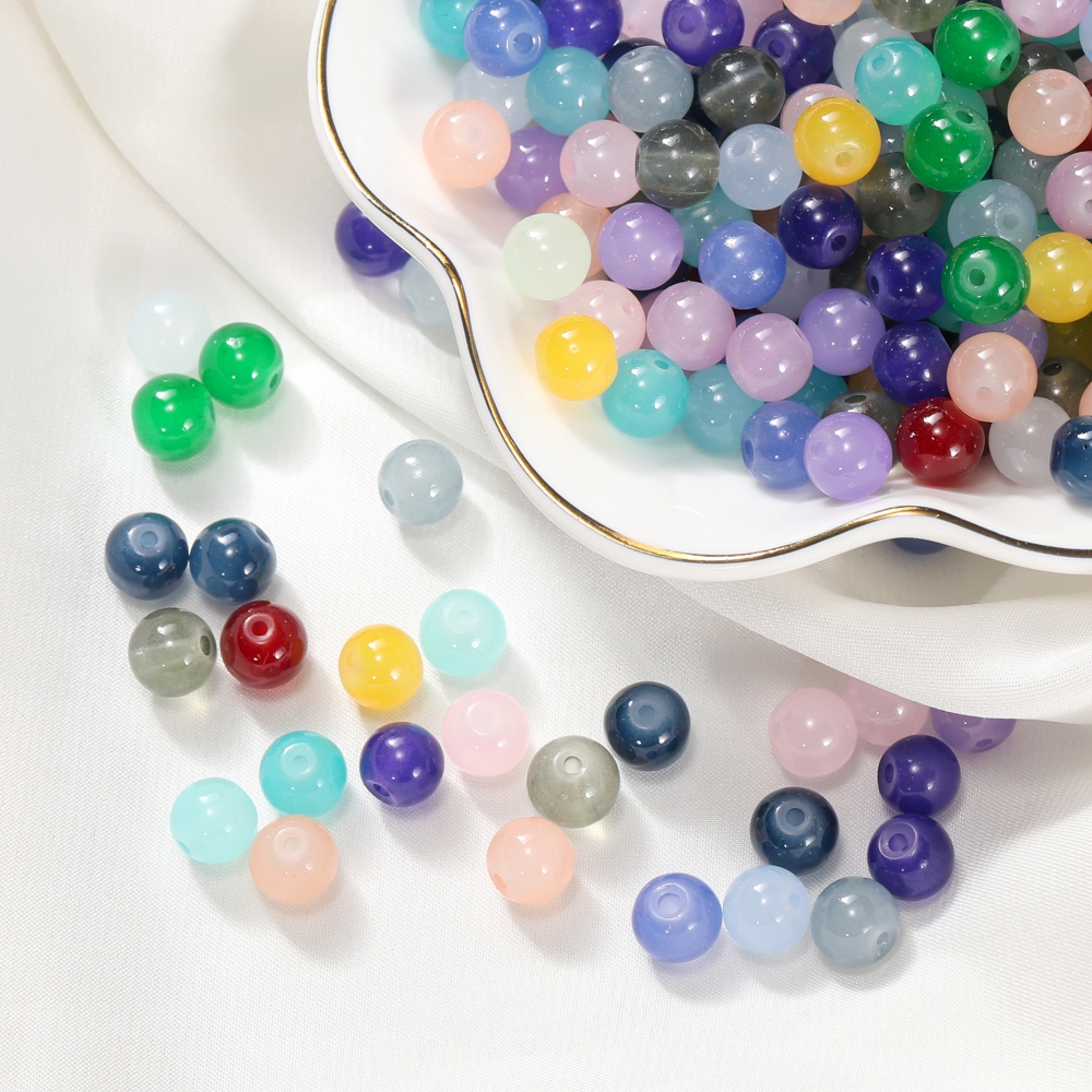 ST.KUNKKA 4-6-8 มม.30 ชิ้นแก้วเลียนแบบลูกปัดหยกคุณภาพสูงสําหรับเครื่องประดับ DIY ทําสร้อยข้อมือสร้อยคอ