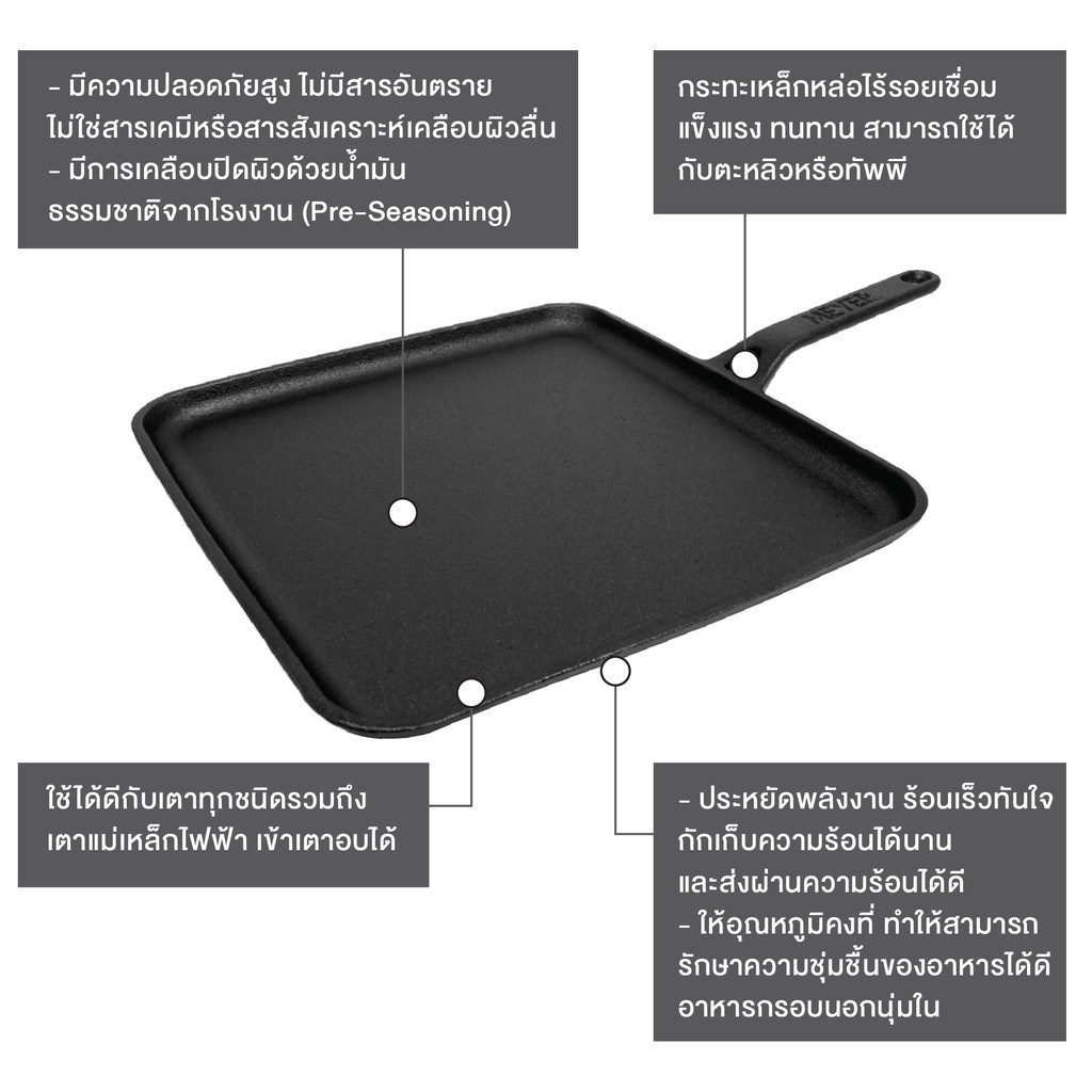 MEYER CAST IRON SQUARE FLAT TAWA กระทะเหล็กหล่อ กระทะสี่เหลี่ยม ขนาด 28CM(48243-C)