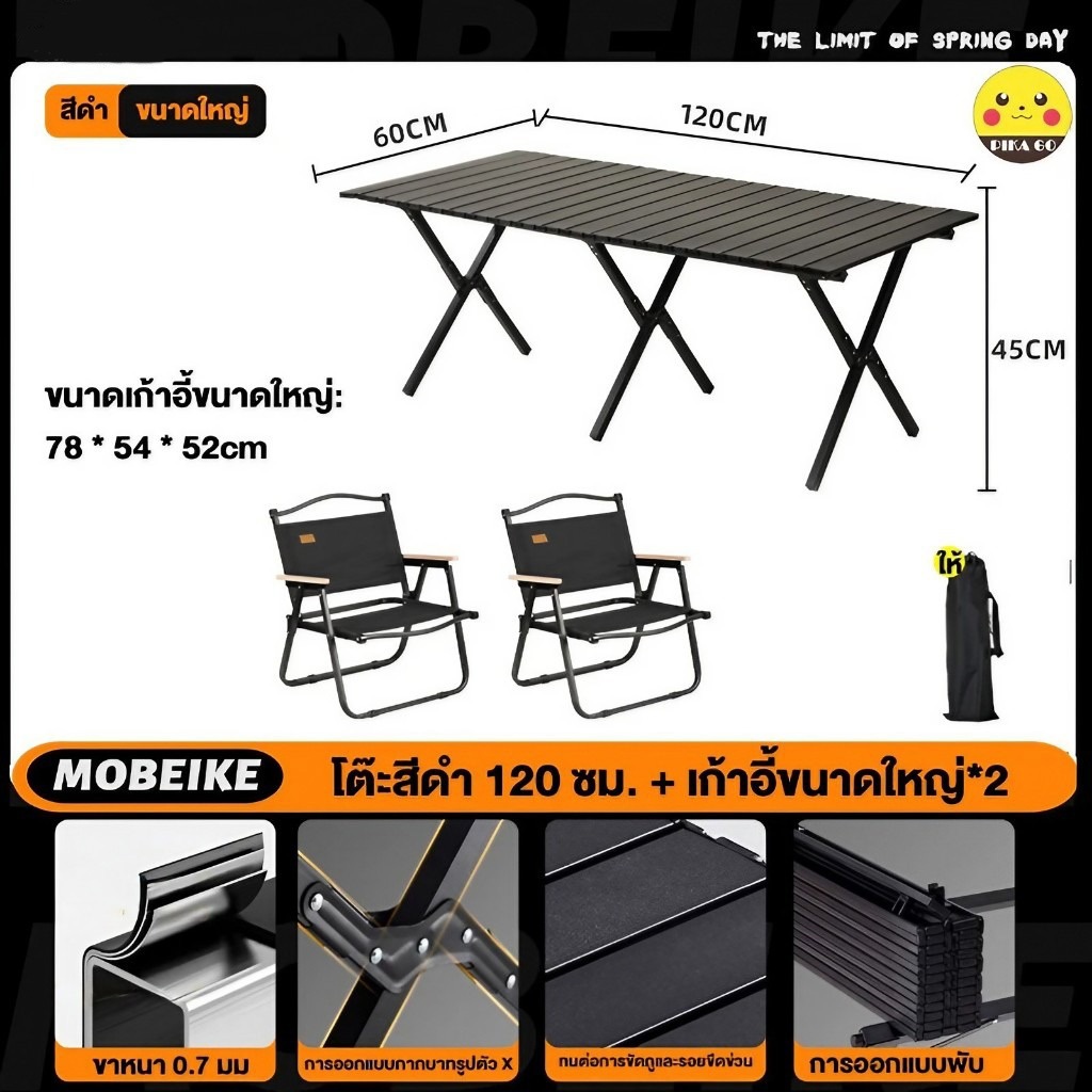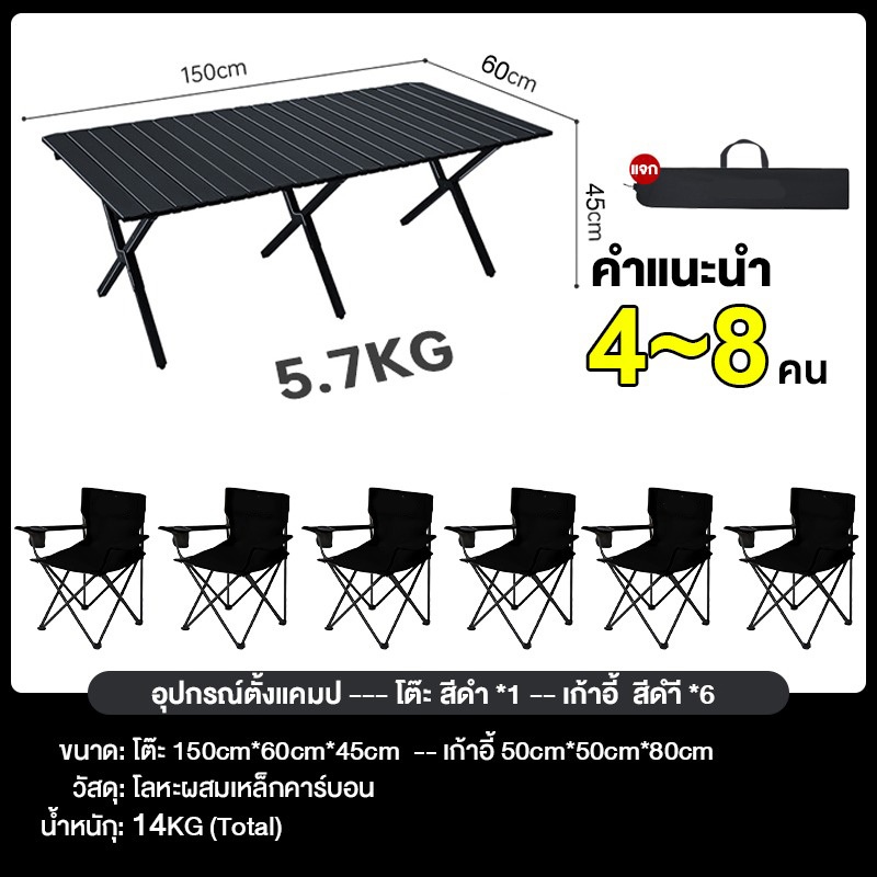 โต๊ะแคมป์ปิ้ง เก้าอี้แคมป์ปิ้ง รั บน้ำหนัก300kg อุปกรณ์แคมป์ปิ้ง พกพาสะดวก 90/120/150CM