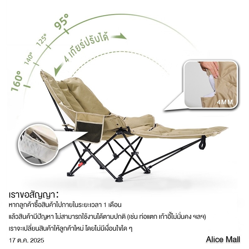 ☁️เพิ่มผ้าฝ้าย☁️เก้าอี้แคมป์ปิ้ง เก้าอี้สนามเดินป่า กลางแจ้ง รับน้ำหนักได้ 300kg เนื้อผ้าใบOxford