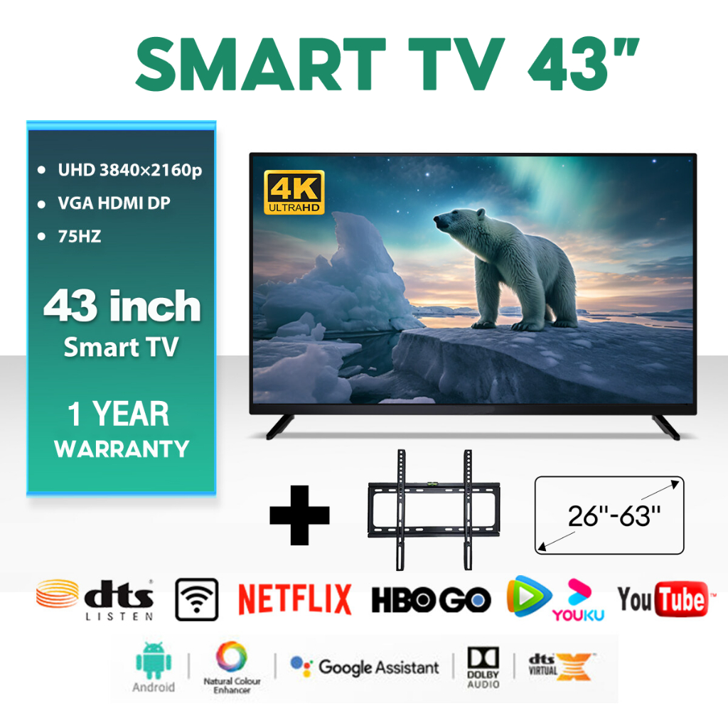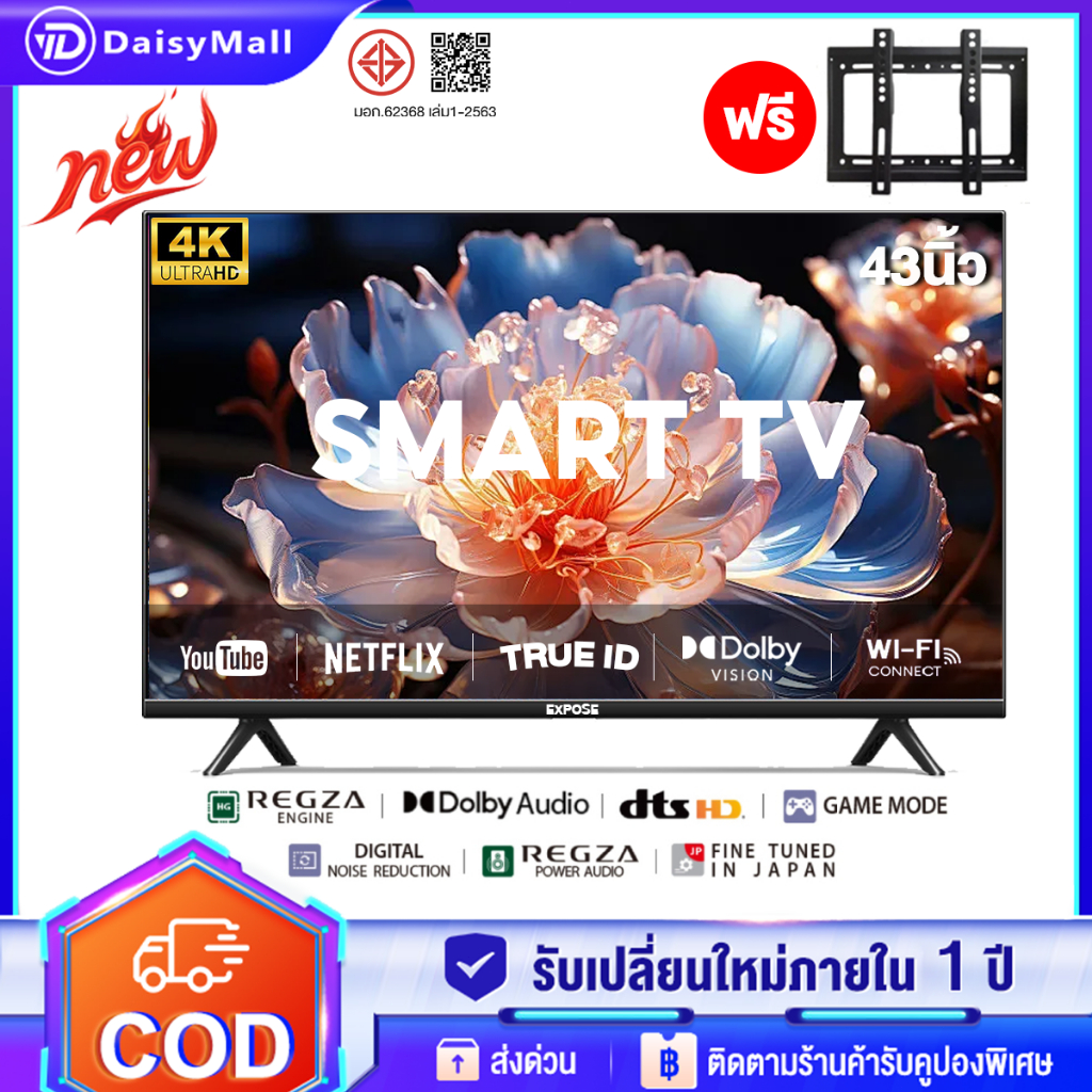 ทีวี 43 นิ้ว Smart TV 4K LED โทรทัศน์ 43 นิ้ว สมาร์ททีวี Android ทีวีดิจิตอล รับประกัน 1ปี HDR10+