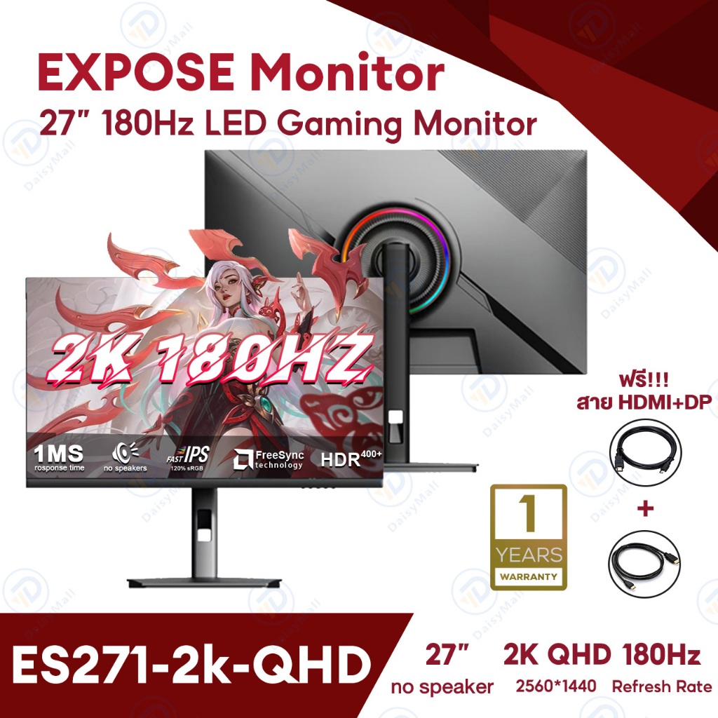 จอคอมพิวเตอร์ 2k 27 นิ้ว 180hz จอคอม Gaming monitor 27 นิ้ว 240hz IPS 1ms เต็มจอไร้ขอบ QHD 120% sRGB