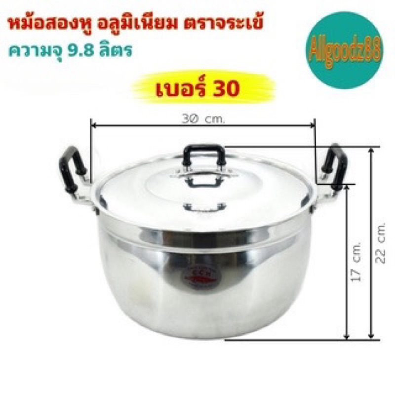 หม้อ+ฝาหม้อ 2 หู หม้อข้าวหม้อแกงหม้อ 2 หู อลูมิเนียม (ตราจระเข้) แท้ เบอร์ 30*สามารออกใบกำกับภาษีได้ค่ะ