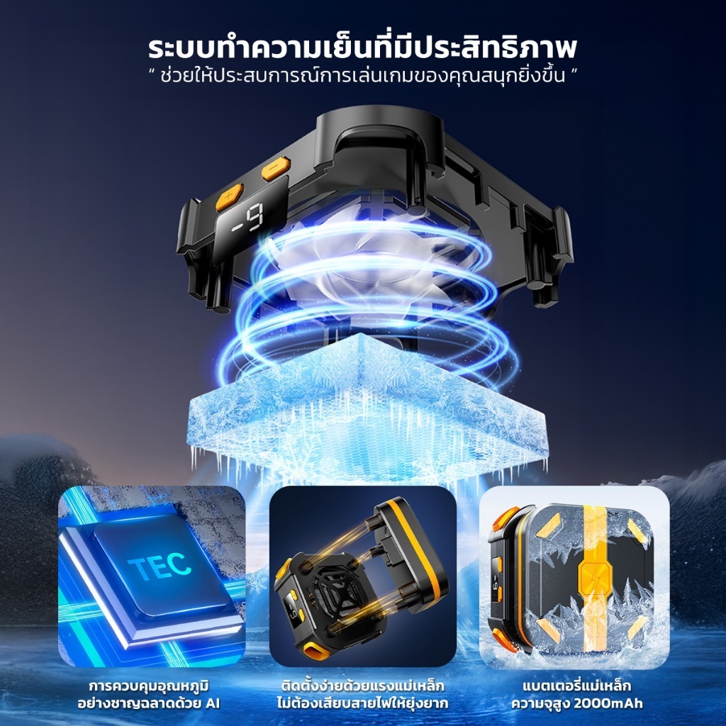 Wireless Magnetic Phone Cooler พัดลมระบายความร้อนมือถือ P70 จอแสดงผล LED ระบบควบคุมอุณหภูมิด้วย AI