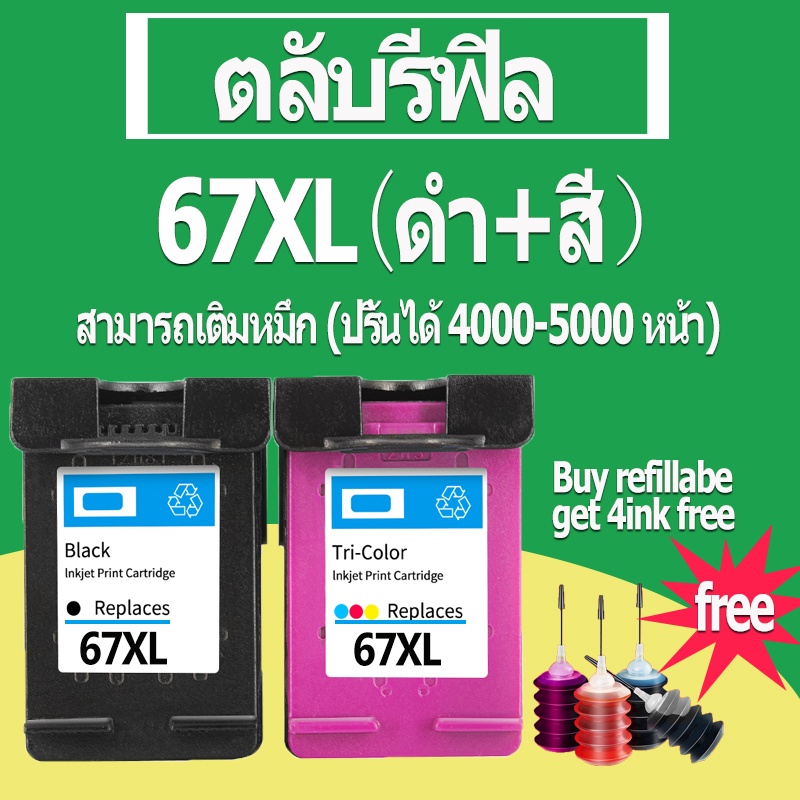 HP 67 สีดำ HP67 หมึก HP67XL ตลับหมึกรีฟิลเข้ากันได้สำหรับ HP 1210 1255 2724 2725 2722 2723 2752 2755 2330 2331 2332