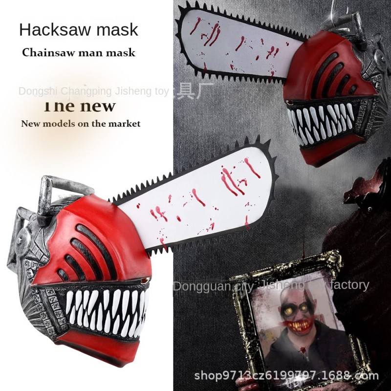 ♫ หน้ากากเลื่อยโซ่ เรฟ คอสเพลย์ อนิเมะ หมวกกันน็อคสยองขวัญ เลื่อยไฟฟ้า มาสคาร่าลาเท็กซ์เต็มหัว เครื่องแต่งกายฮาโลวีนตลกๆ Th