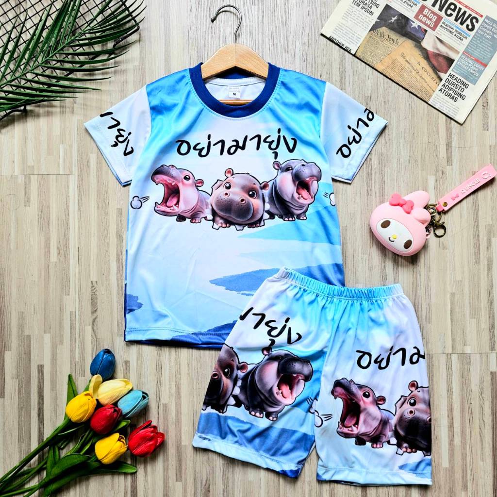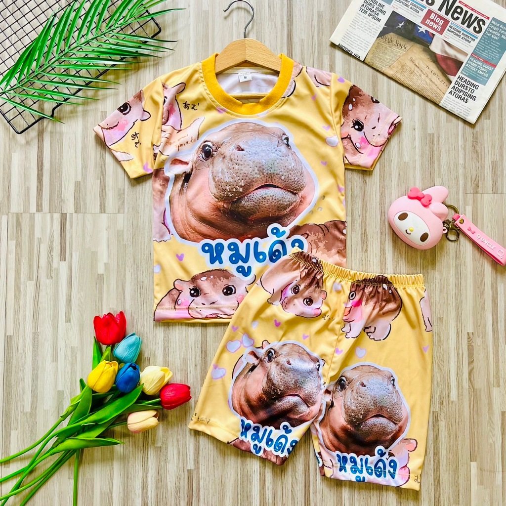 เสื้อผ้าเด็ก ชุดเด็ก หมูเด้ง แขนสั้น ขาสั้น ผ้าลื่น (งานอิ๋ม)