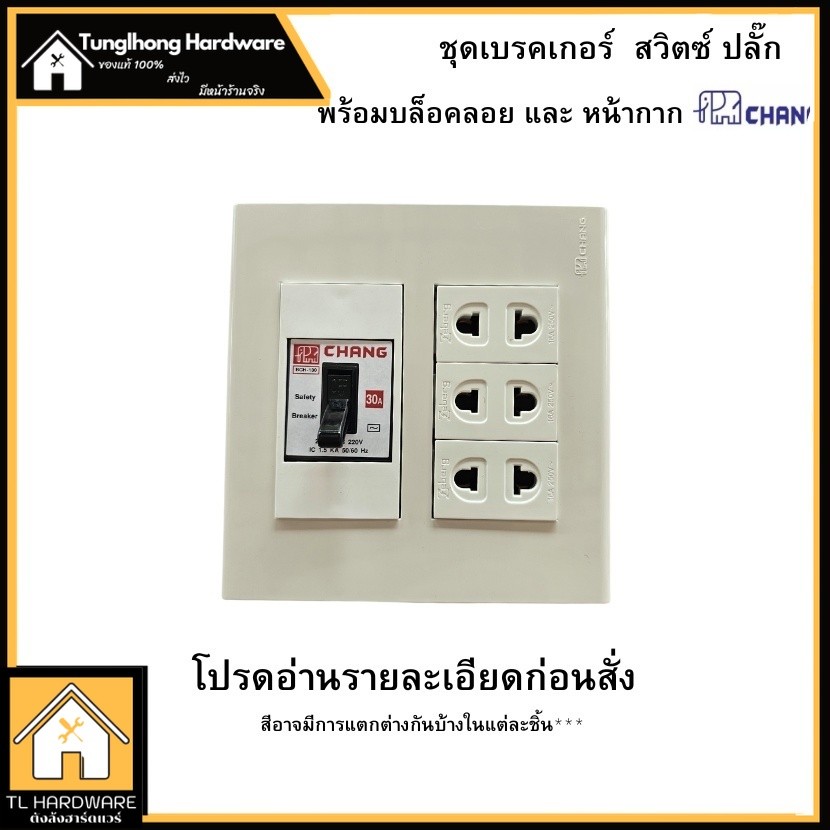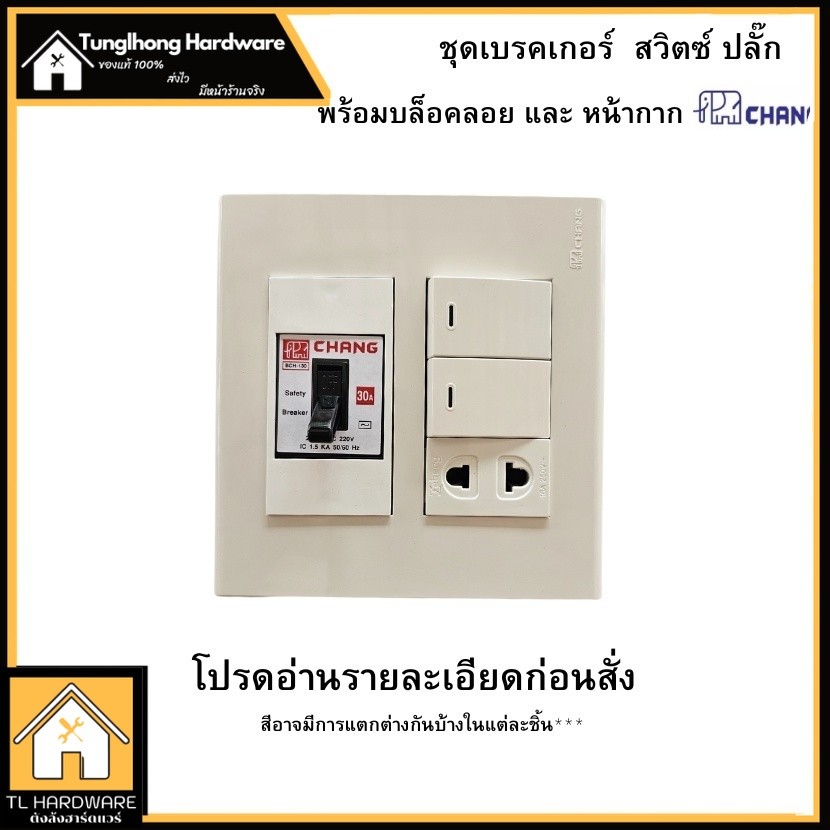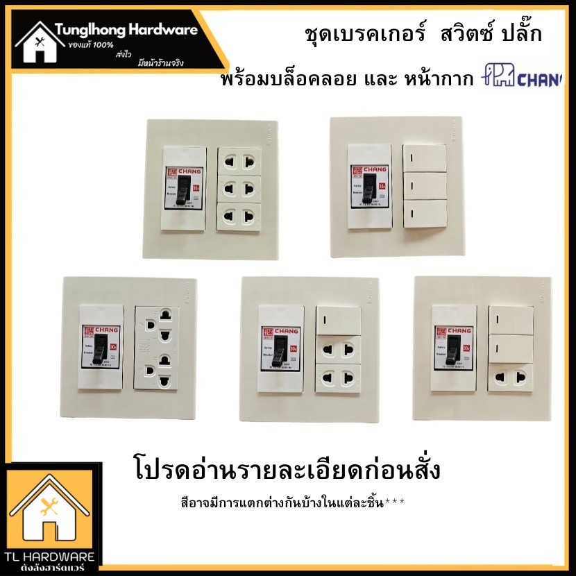 Chang เต้ารับปลั๊กเบรคเกอร์ในตัว หน้ากาก ตราช้าง หน้ากาก ปลั๊กกราวน์คู่ ปลั๊กเดี่ยว สวิตซ์ เต้ารับ(พร้อมบล็อคลอย)