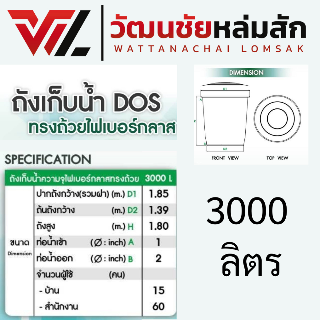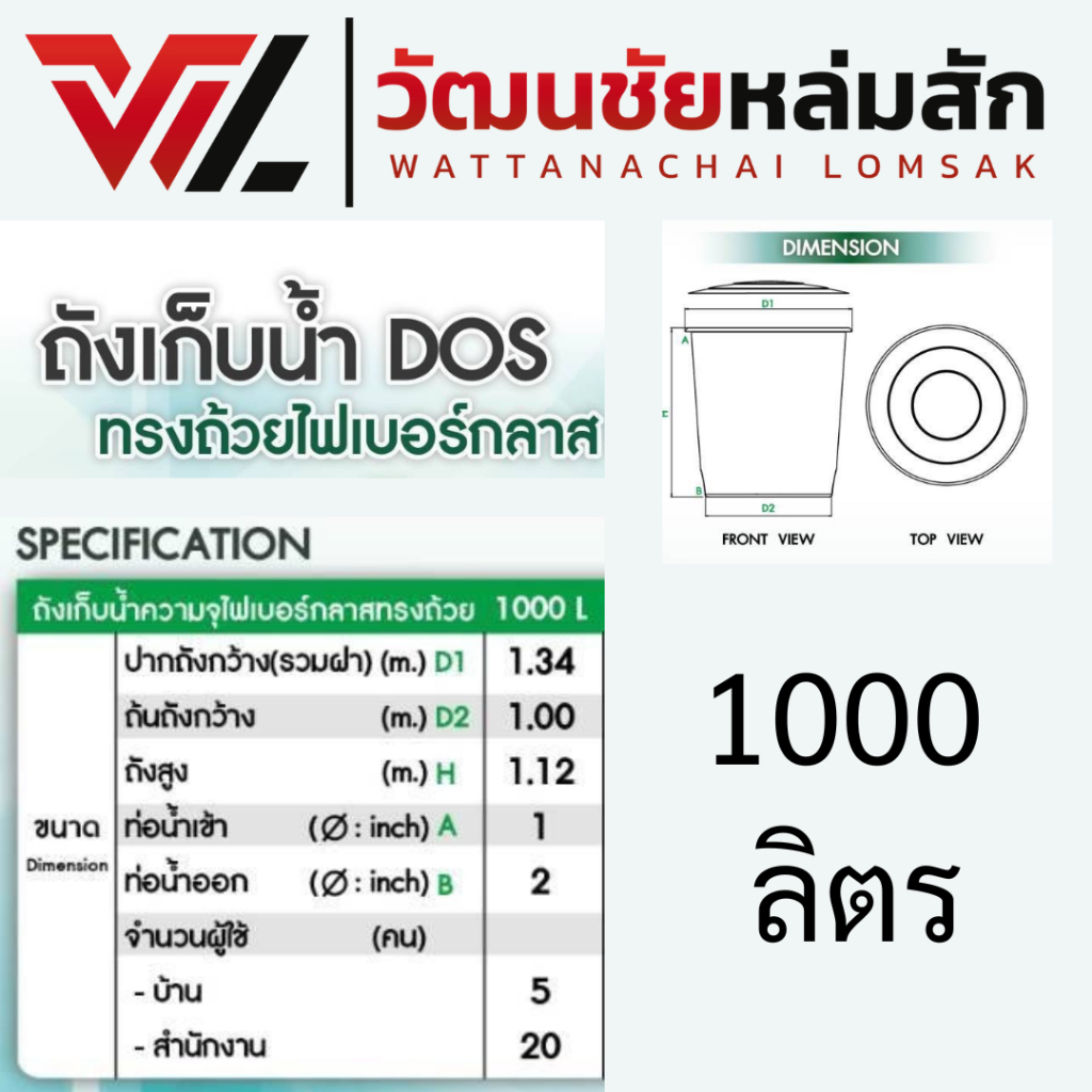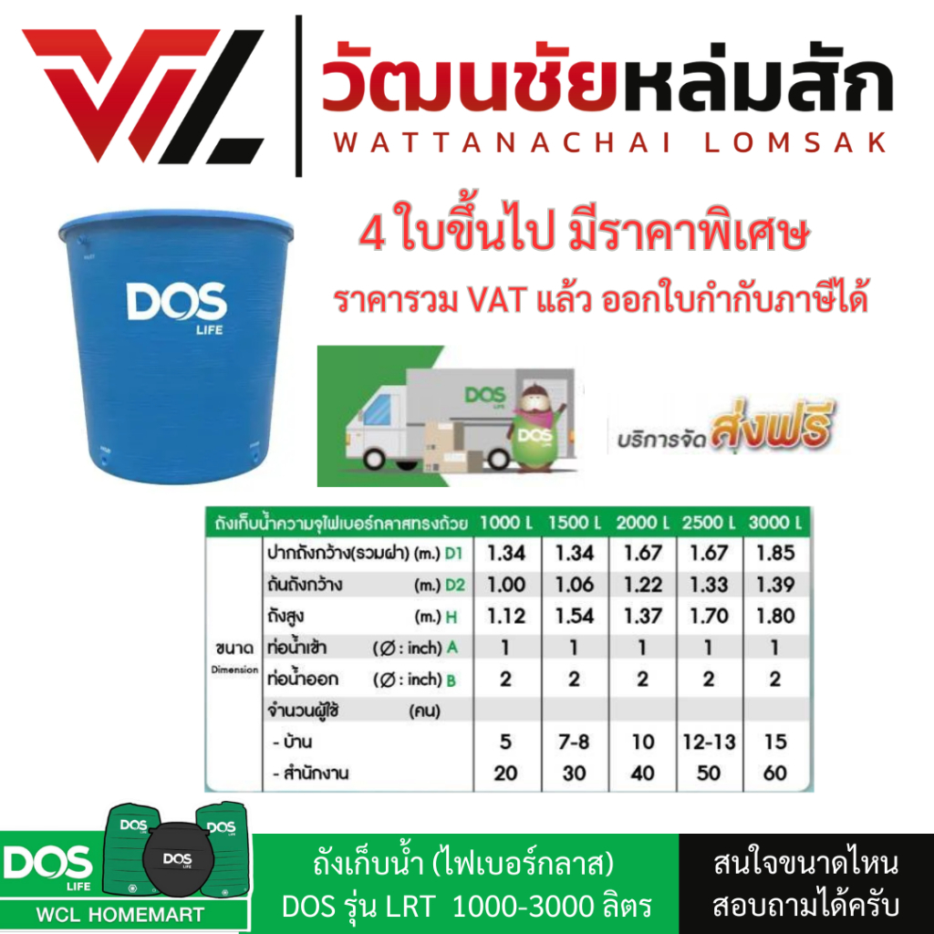 [ส่งฟรี] DOS ถังเก็บน้ำ (ไฟเบอร์กลาส) รุ่น LRT และ Wave รุ่น WWTG 1000 1500 2000 2500 3000 ลิตร