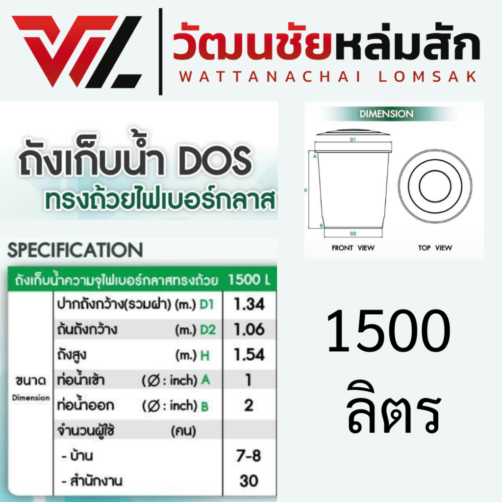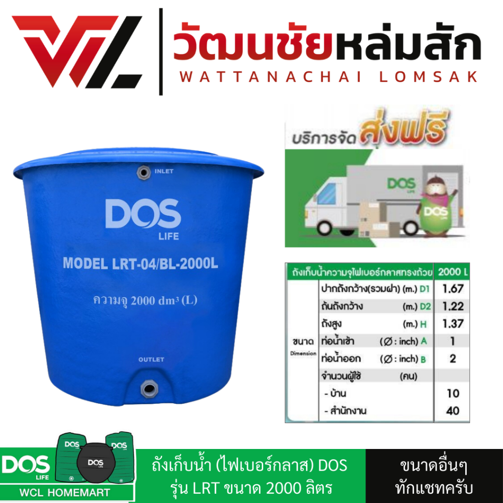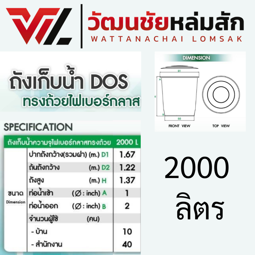 [ส่งฟรี] DOS ถังเก็บน้ำ (ไฟเบอร์กลาส) รุ่น LRT และ Wave รุ่น WWTG 1000 1500 2000 2500 3000 ลิตร