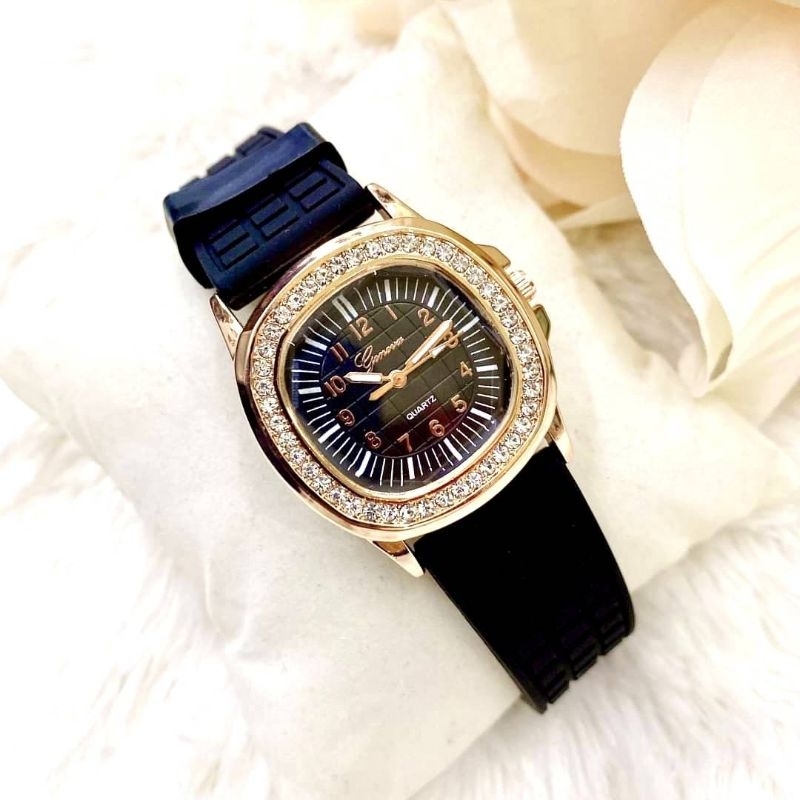นาฬิกา ก้านเเก้ว geneva เเบรนด์เเท้ นาฬิกาผู้หญิง สายชิลิโคน นิ่มใส่สบาย ใส่ได้ทุกวัย