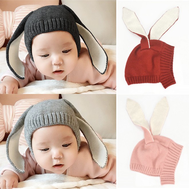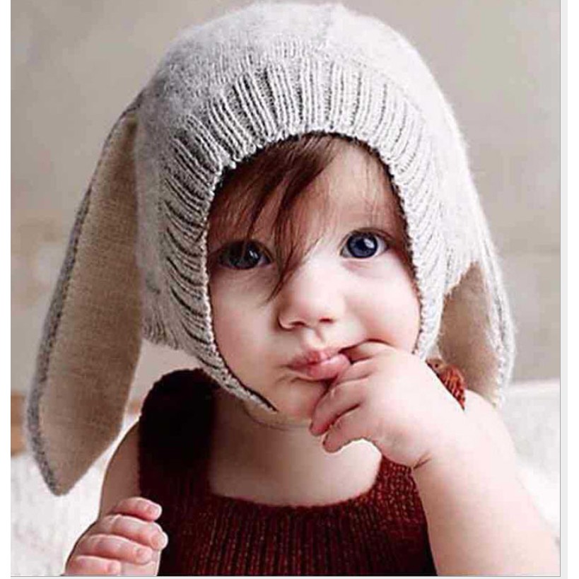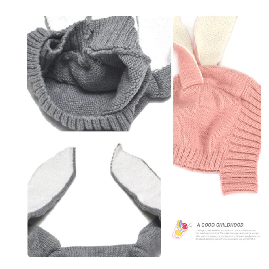 หมวกไหมพรมเด็กแต่งหูกระต่าย หมวกกันหนาวไหมพรมอุ่นๆ