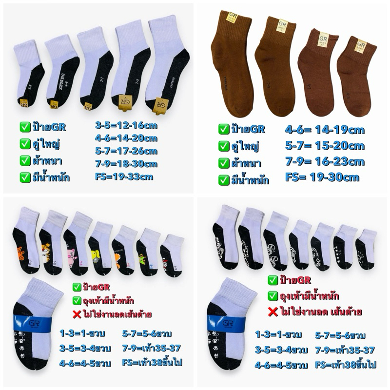 แพ็ค12คู่ ถุงเท้านักเรียนข้อกลาง ขาวพื้นเทา กันลื่น น้ำตาล พื้นการ์ตูน ราคาส่ง(12双)